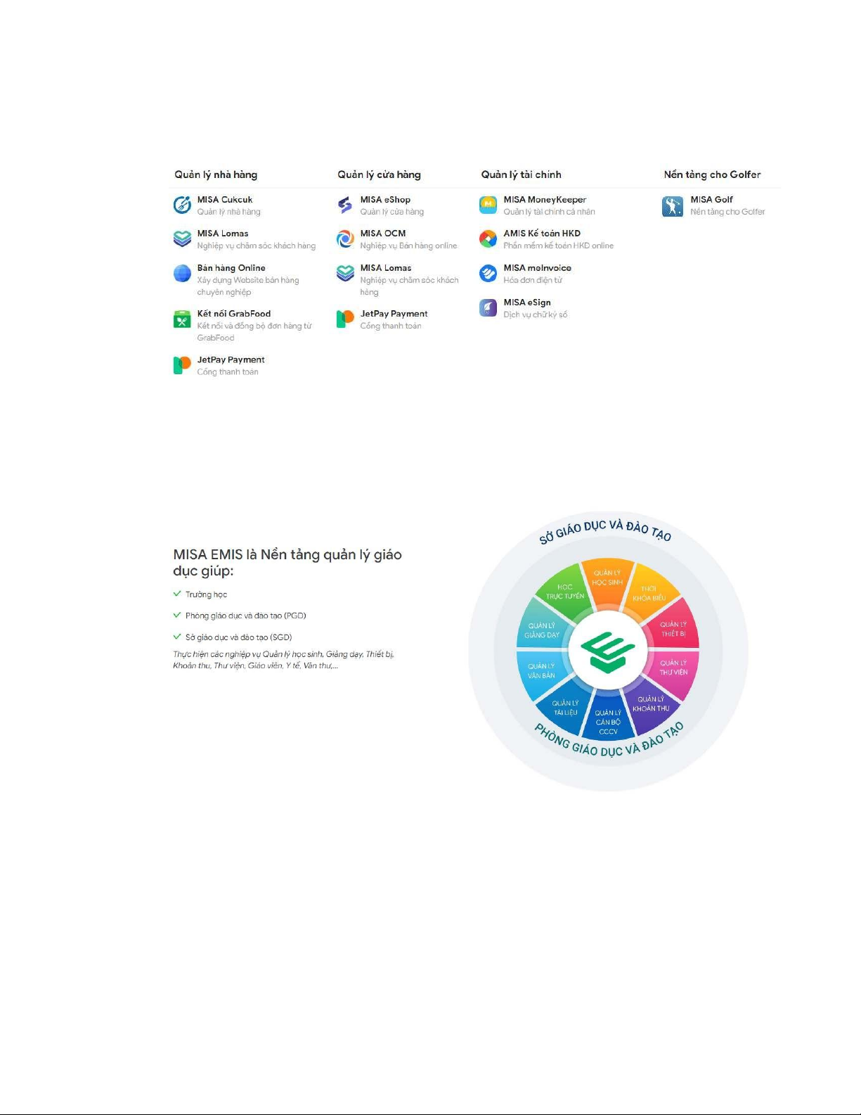 và tài chính. Cụ thể, MISA tập trung vào các lĩnh vực sau:  •