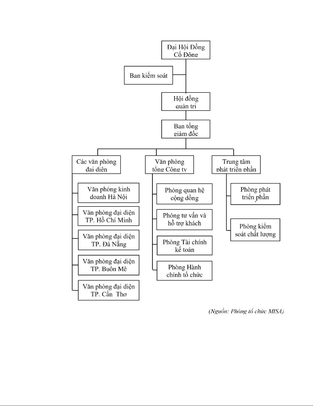 Các văn phòng ại diện của Misa ều ược cơ cấu dựa trên mô hình tổ chức của tổng công ty
