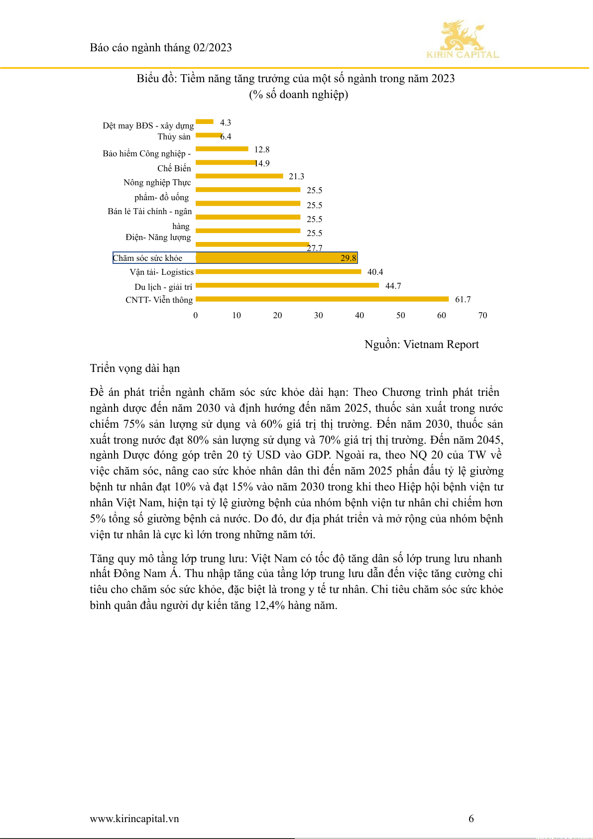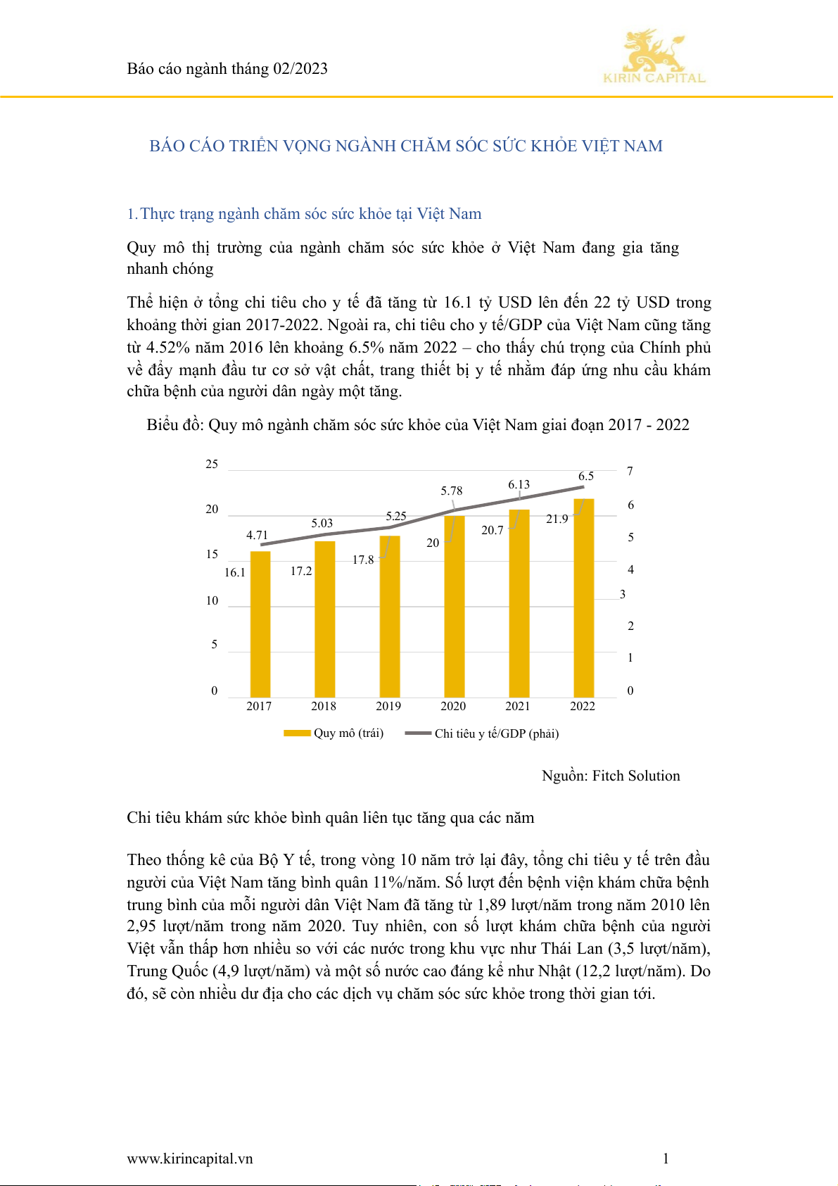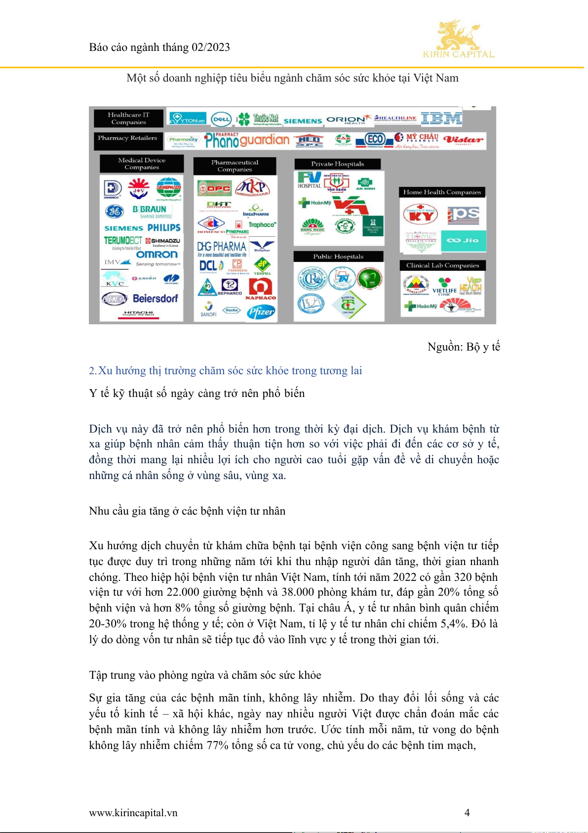 đó, sẽ còn nhiều dư địa cho các dịch vụ chăm sóc sức khỏe trong thời gian tới. www.kirincapital.vn 1