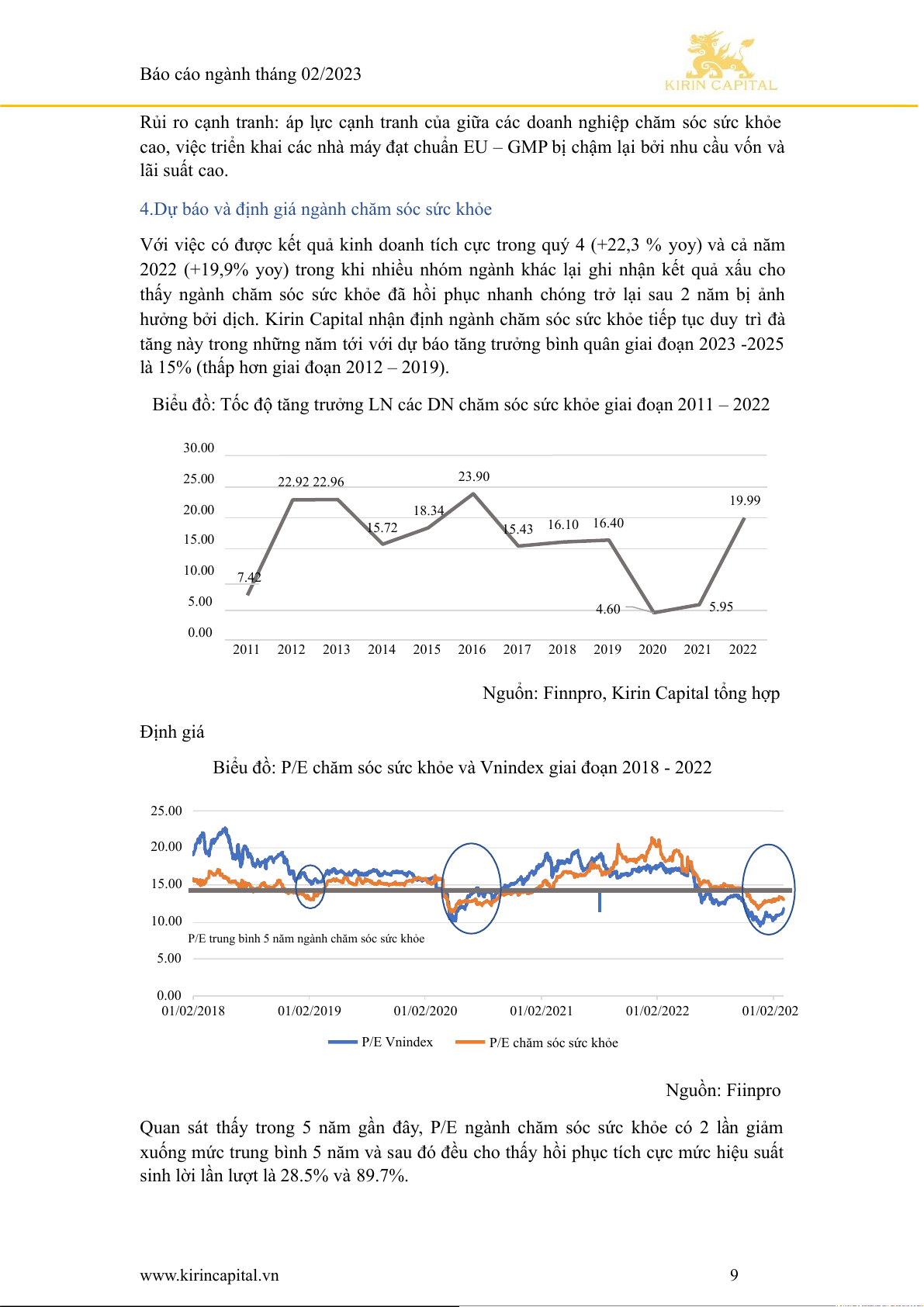 nhất là 14.92x. Do đó, Kirin Capital dự báo mức định giá của nhóm chăm sóc sức