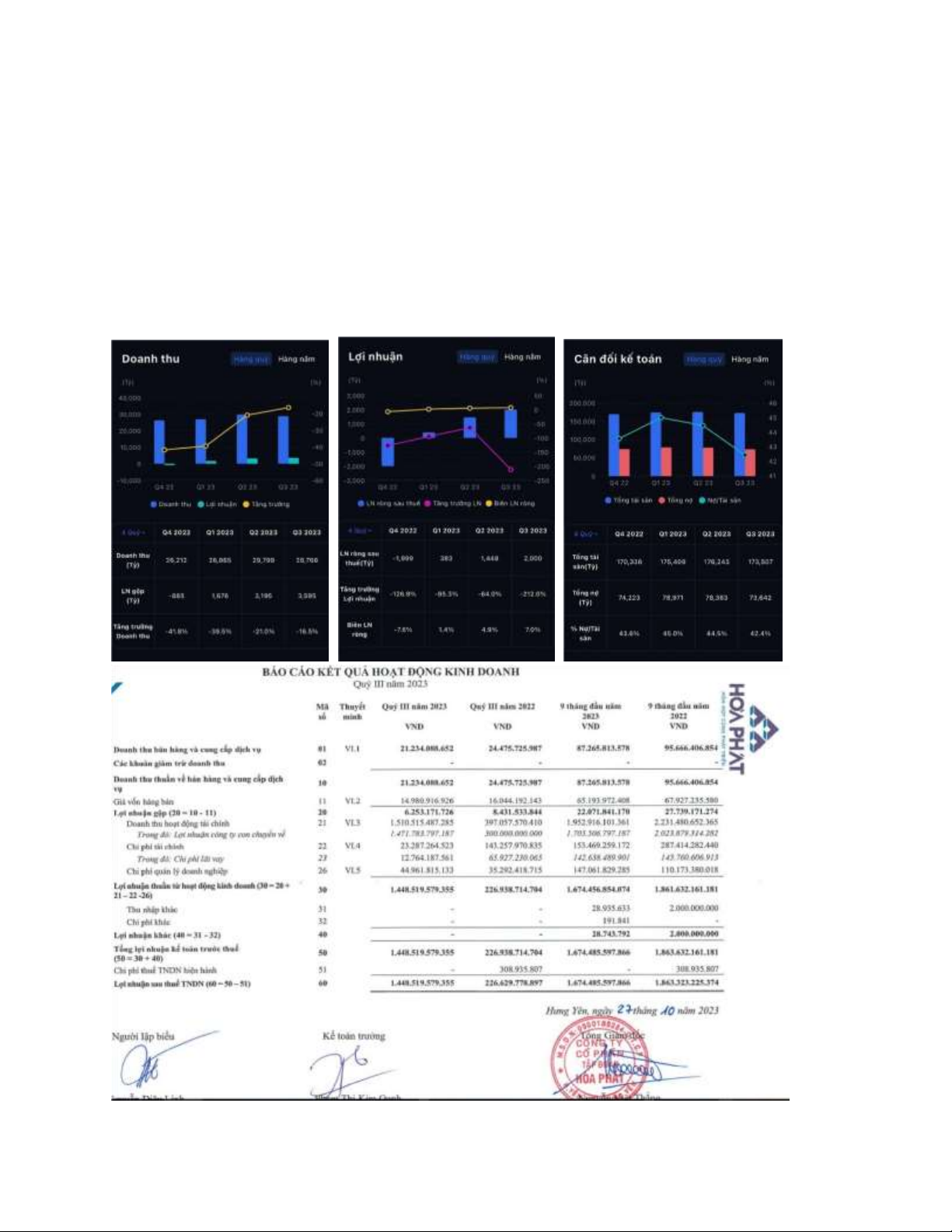Hòa Phát để phục vụ cho hoạt động sản xuất, kinh doanh của doanh nghiệp.