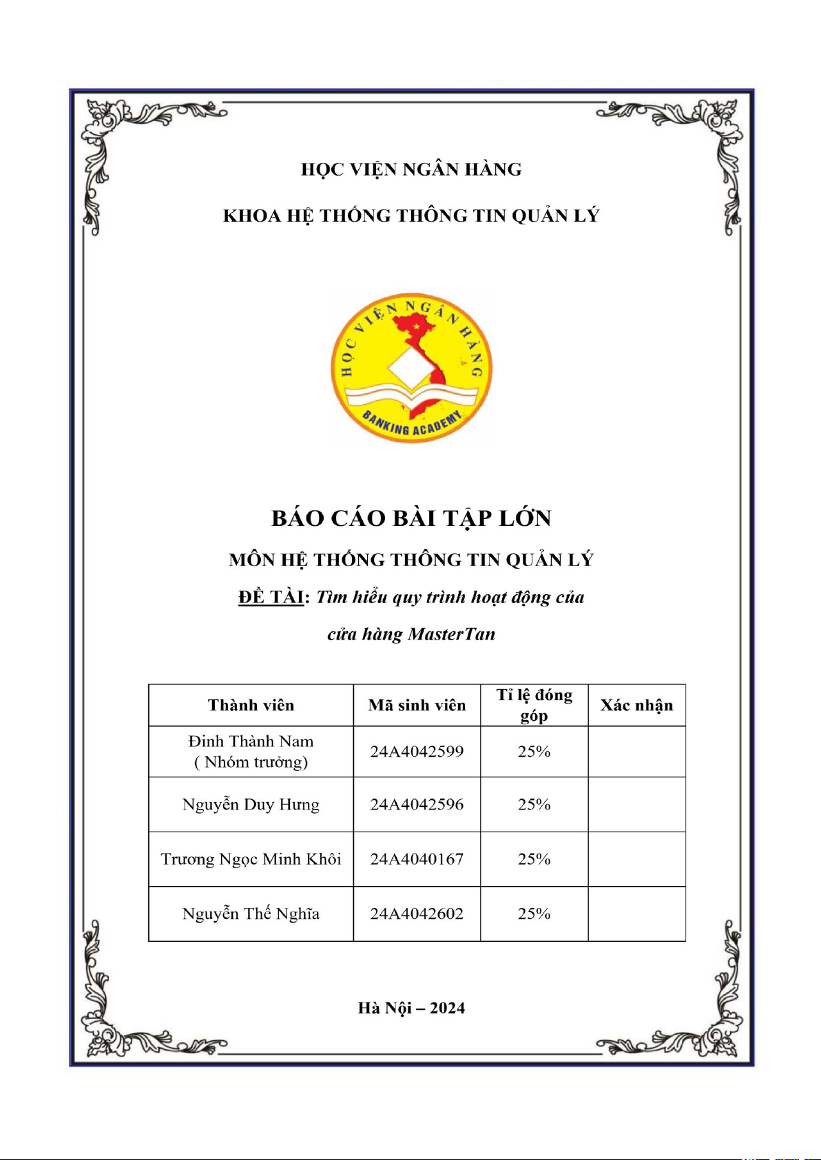 Hà Nội, ngày 16 tháng 6 năm 2024 Đại diện nhóm 2 Đinh Thành Nam MỤC LỤC