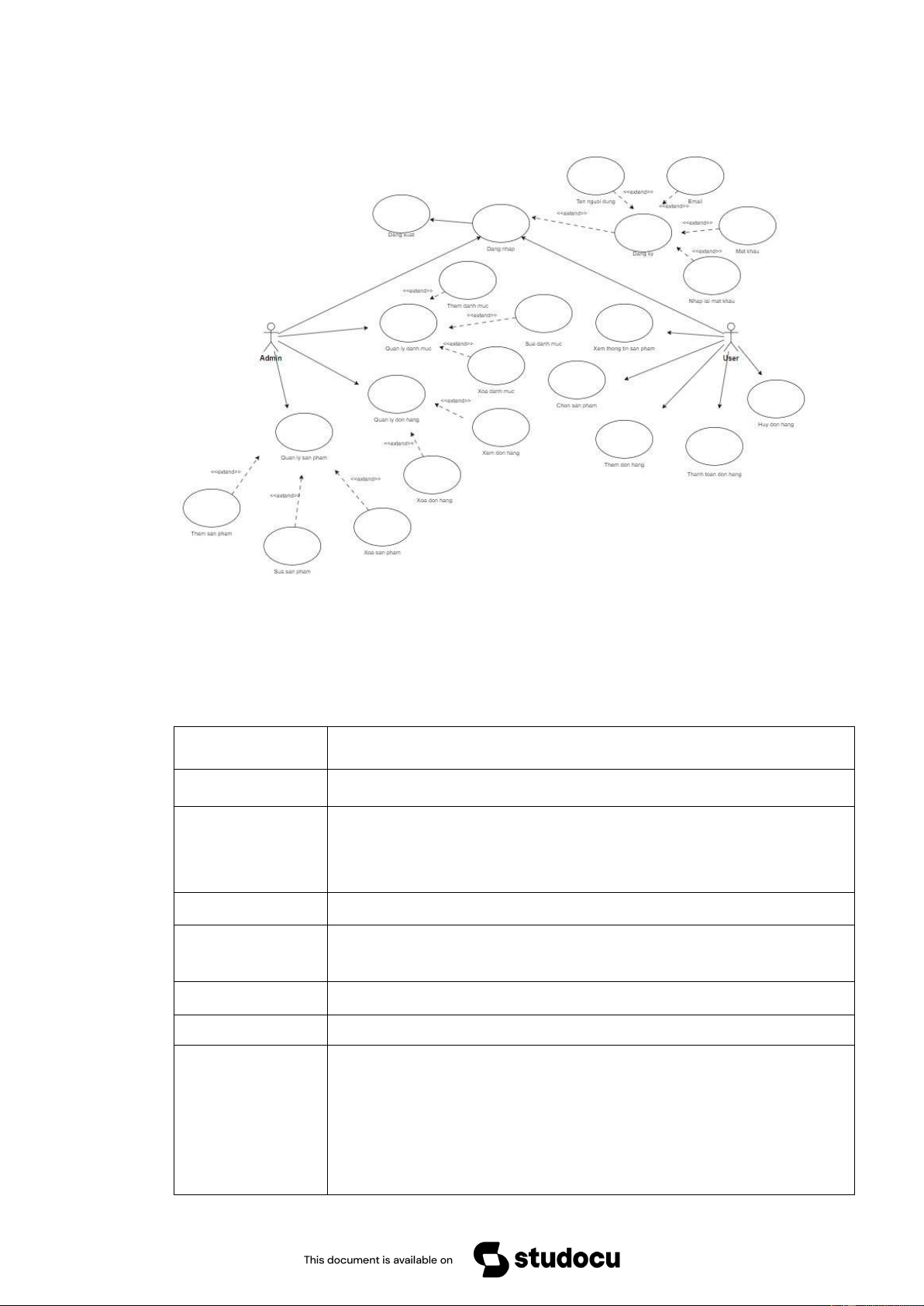 - Admin chọn thêm, sửa, xóa danh mục Kết thúc use case - Usecase Xem sản phẩm Use case Nội dung Tên Xem sản phẩm Mô tả