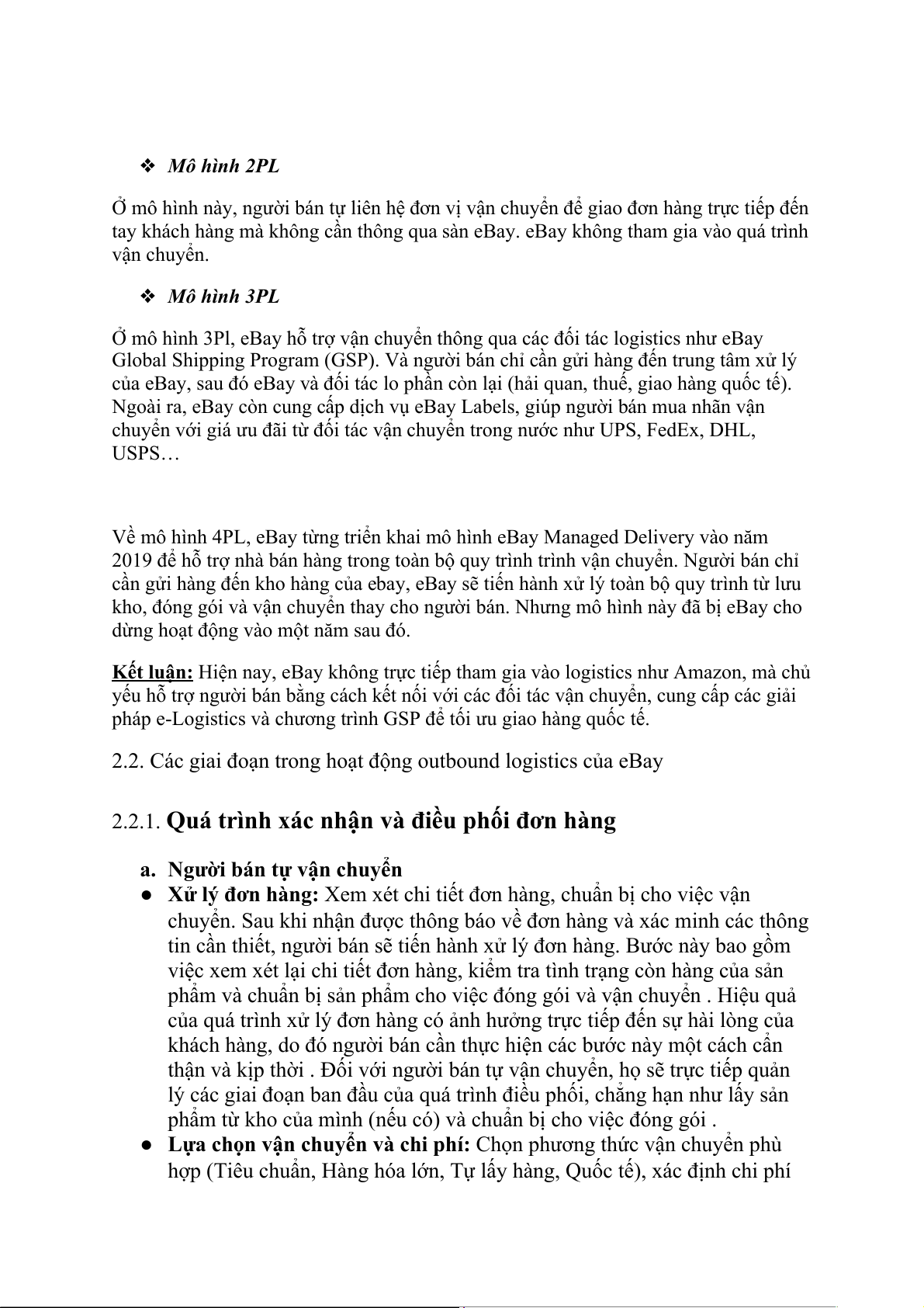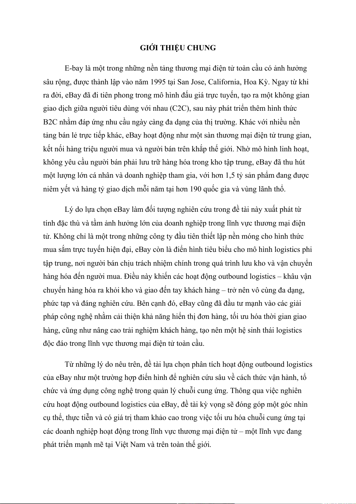 cứu hoạt động outbound logistics của eBay, đề tài kỳ vọng sẽ đóng góp một góc nhìn