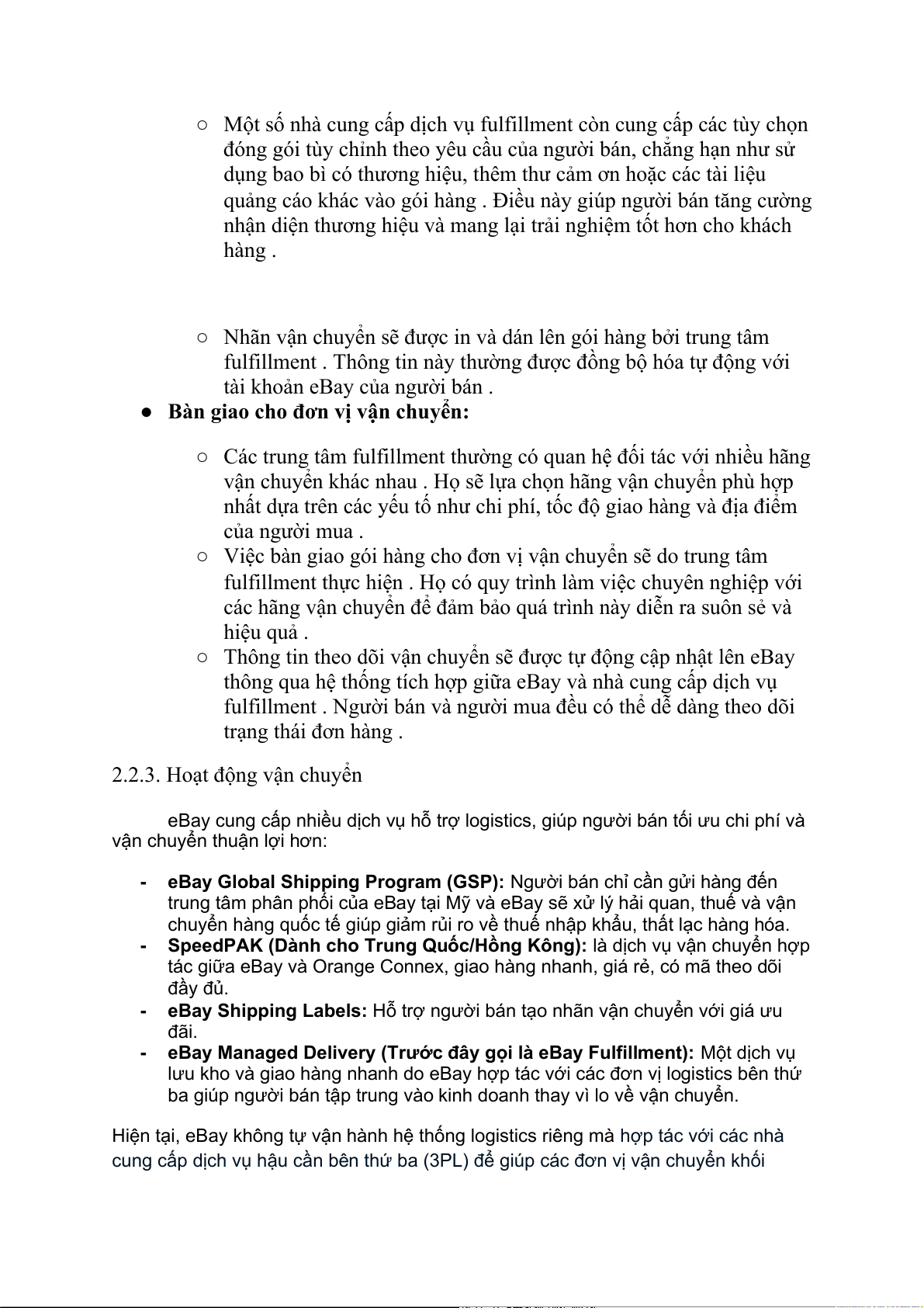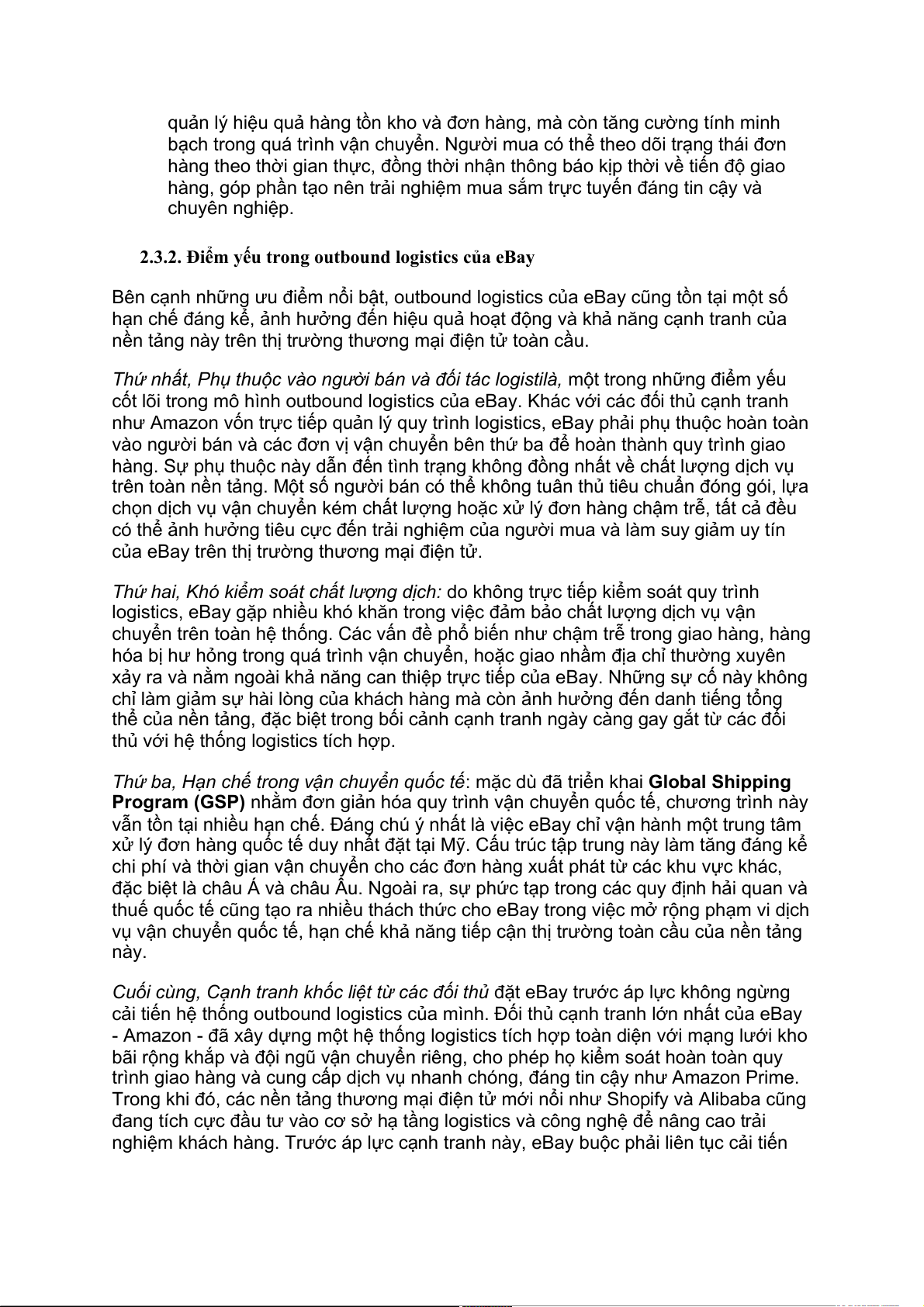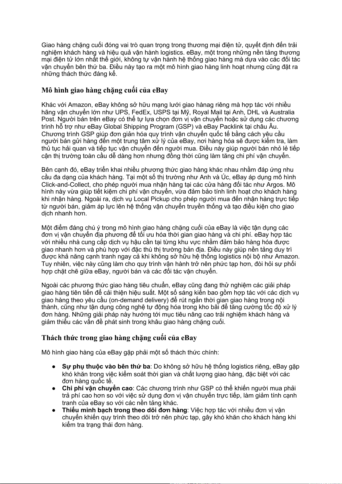 khách hàng và hiệu quả vận hành của eBay. Mặc dù không sở hữu hệ thống logistics riêng,