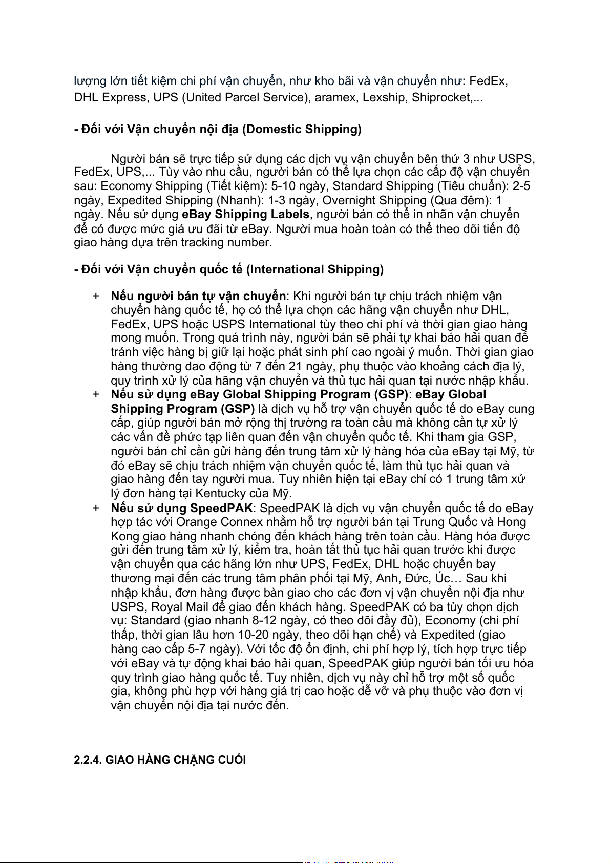 quốc tế hay các quy định vận chuyển giữa các quốc gia. Trong khi đó, eBay