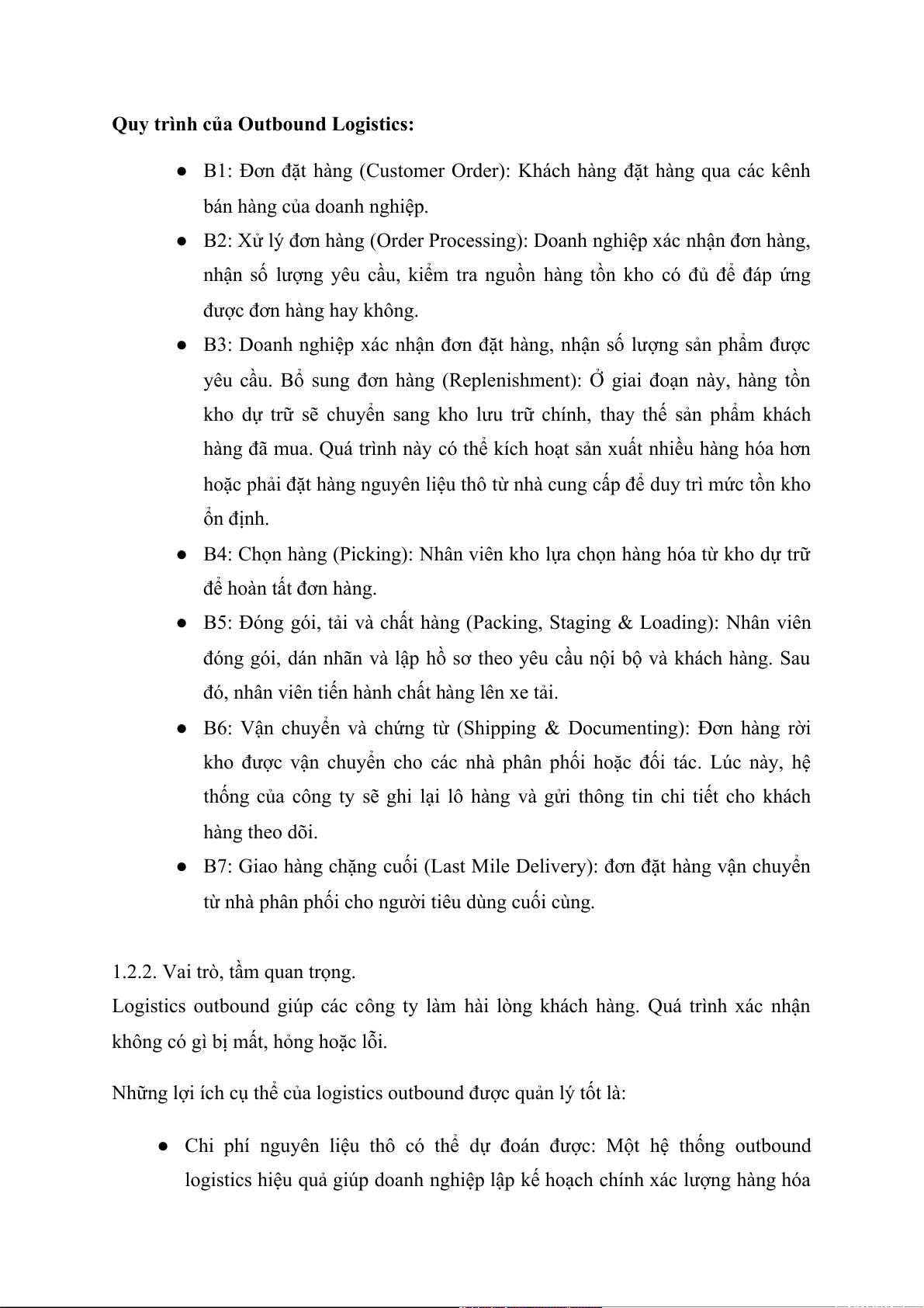 Từ những lý do nêu trên, đề tài lựa chọn phân tích hoạt động outbound logistics