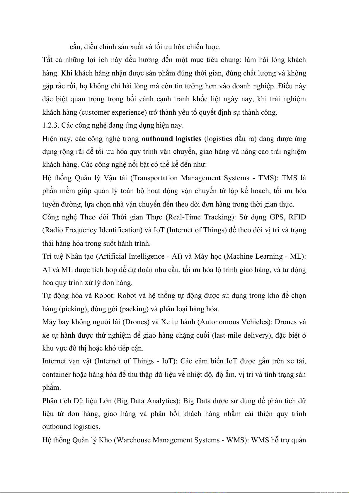 quả outbound logistics. Nền tảng này đã tích hợp nhiều công nghệ tiên tiến