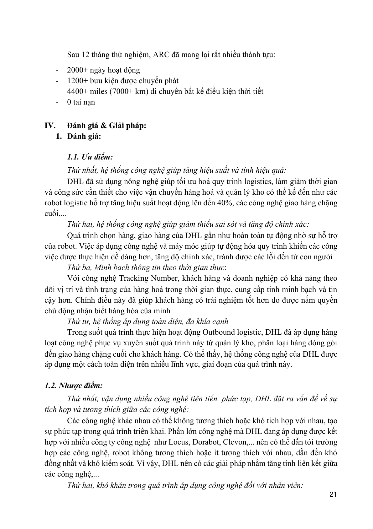 đồng nhất và khó kiểm soát. Vì vậy, DHL nên có các giải pháp nhằm tăng tính liên kết giữa các công nghệ,...