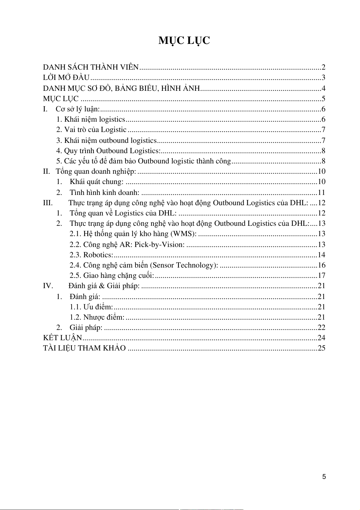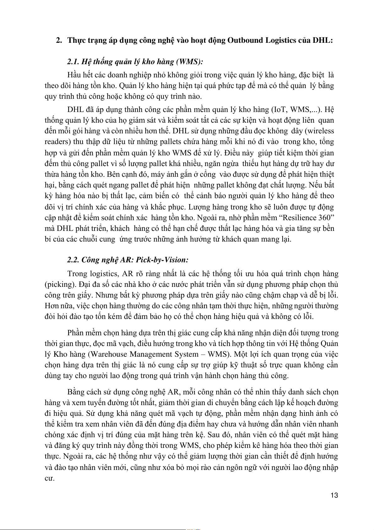 2. Thực trạng áp dụng công nghệ vào hoạt động Outbound Logistics của DHL: . . 13
