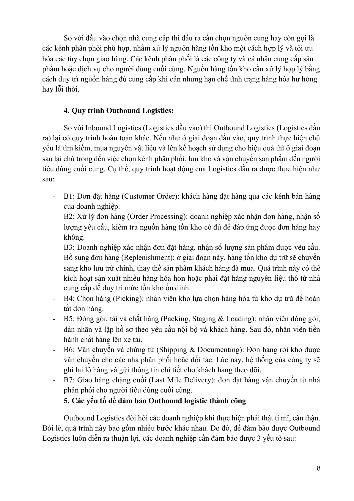 4. Quy trình Outbound Logistics:. . . . . . . . . . . . . . . . . . . . . . . . . . . . . . . . . . . . . . . . . 8