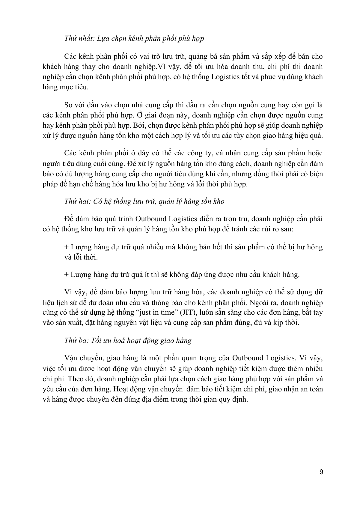 5. Các yếu tố để đảm bảo Outbound logistic thành công . . . . . . . . . . . . . . . . . . . . . . . 8