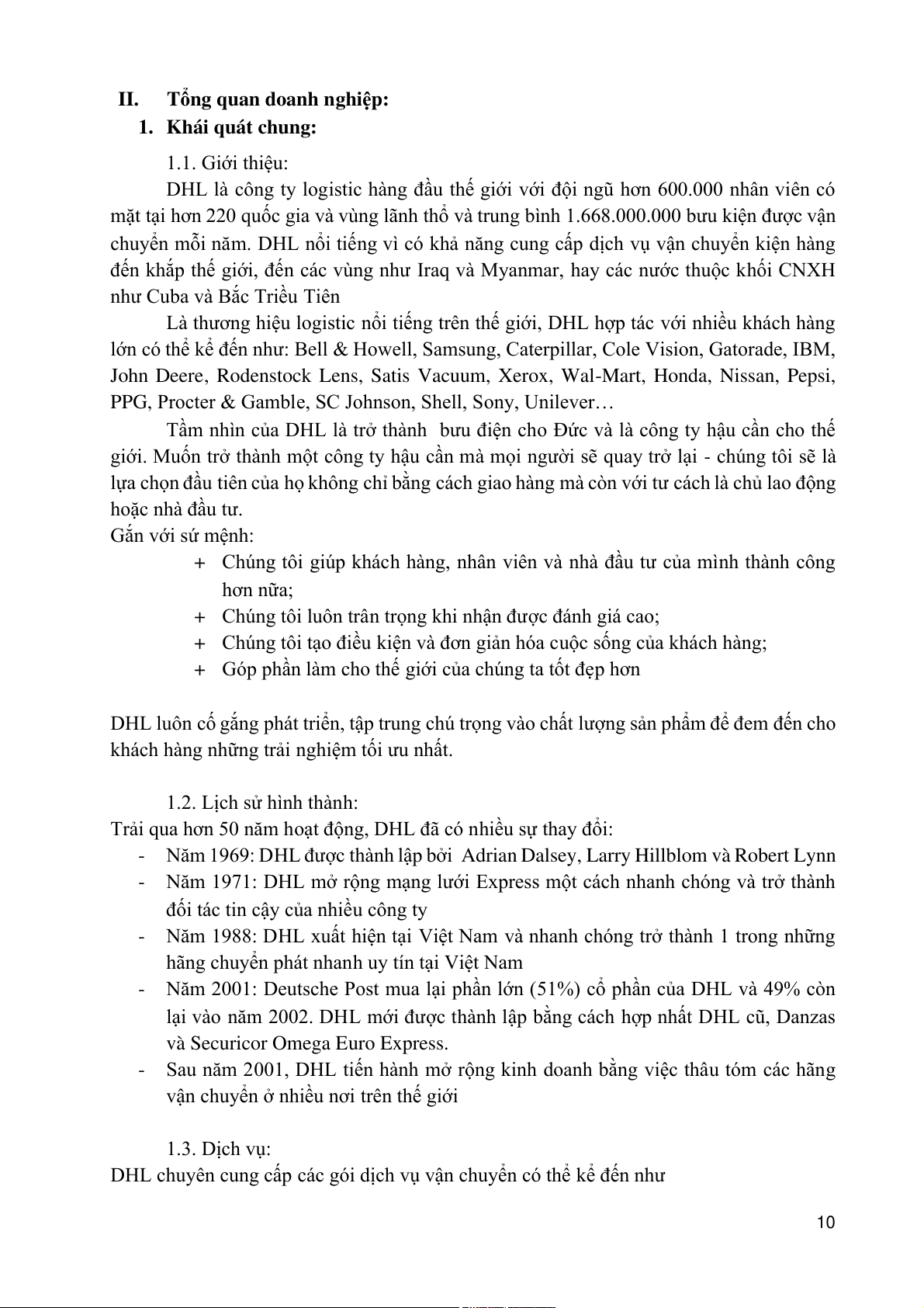 II. Tổng quan doanh nghiệp: . . . . . . . . . . . . . . . . . . . . . . . . . . . . . . . . . . . . . . . . . . . . . . 10