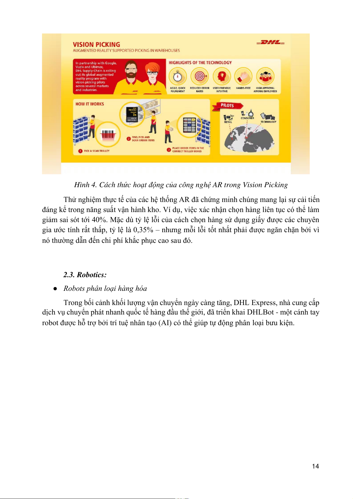 đã sử dụng, như hệ thống quản lý kho tự động, công nghệ thực tế ảo AR, robotics… .