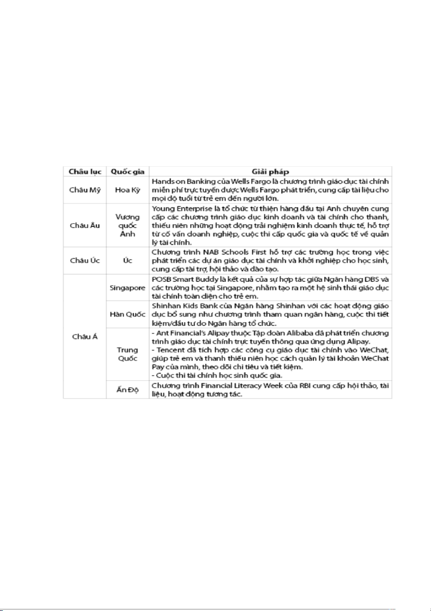 đây là thông tin thể hiện các chương trình giáo dục tài chính tại các nước trên thế giới: