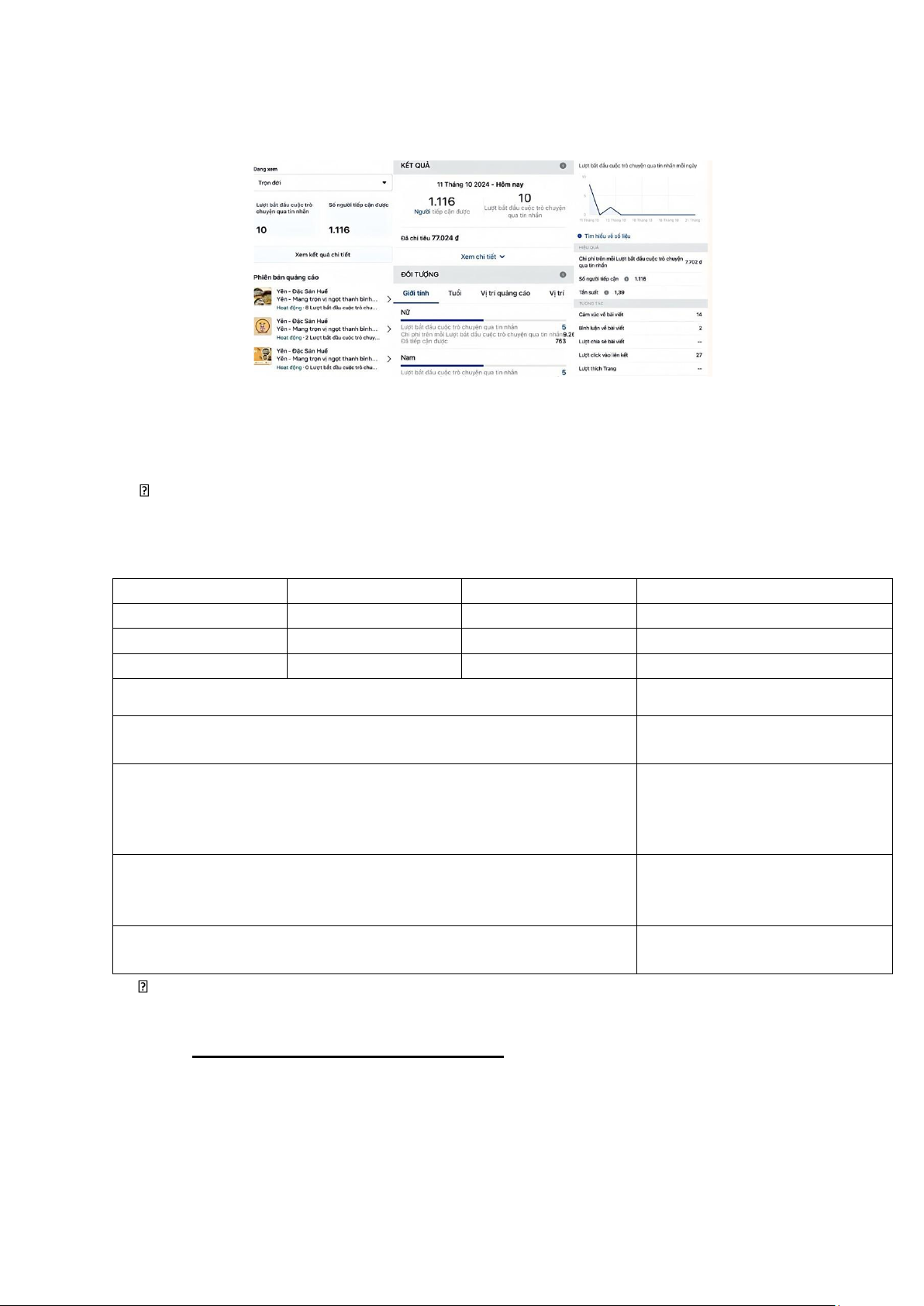 - Số lượng tiếp cận: 1.116 ( trong đó NỮ chiếm phần nhiều) - Số lượng tin nhắn:10 - Tần suất:1,39