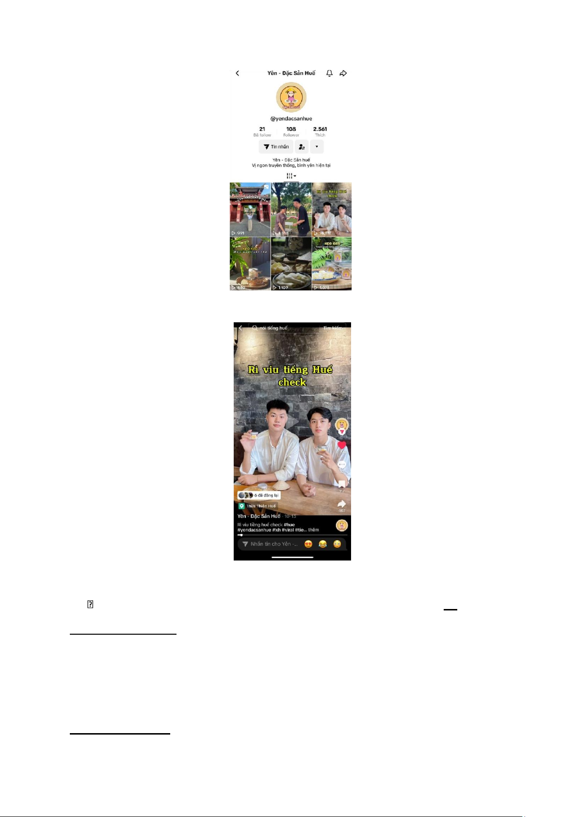 VII. Nền tảng TIKTOK Yên – Đặc sản Huế lOMoAR cPSD| 58794847 - Số lượng post: 8