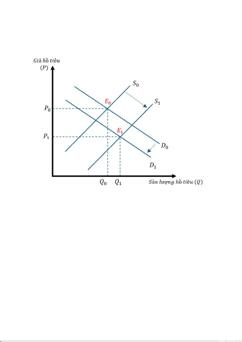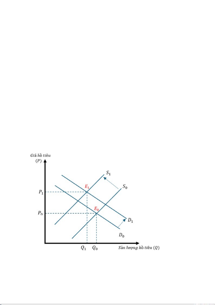 Ban đầu thị trường hồ tiêu đang ở mức cân bằng E0 (Q0;P0), sau đó khi sản