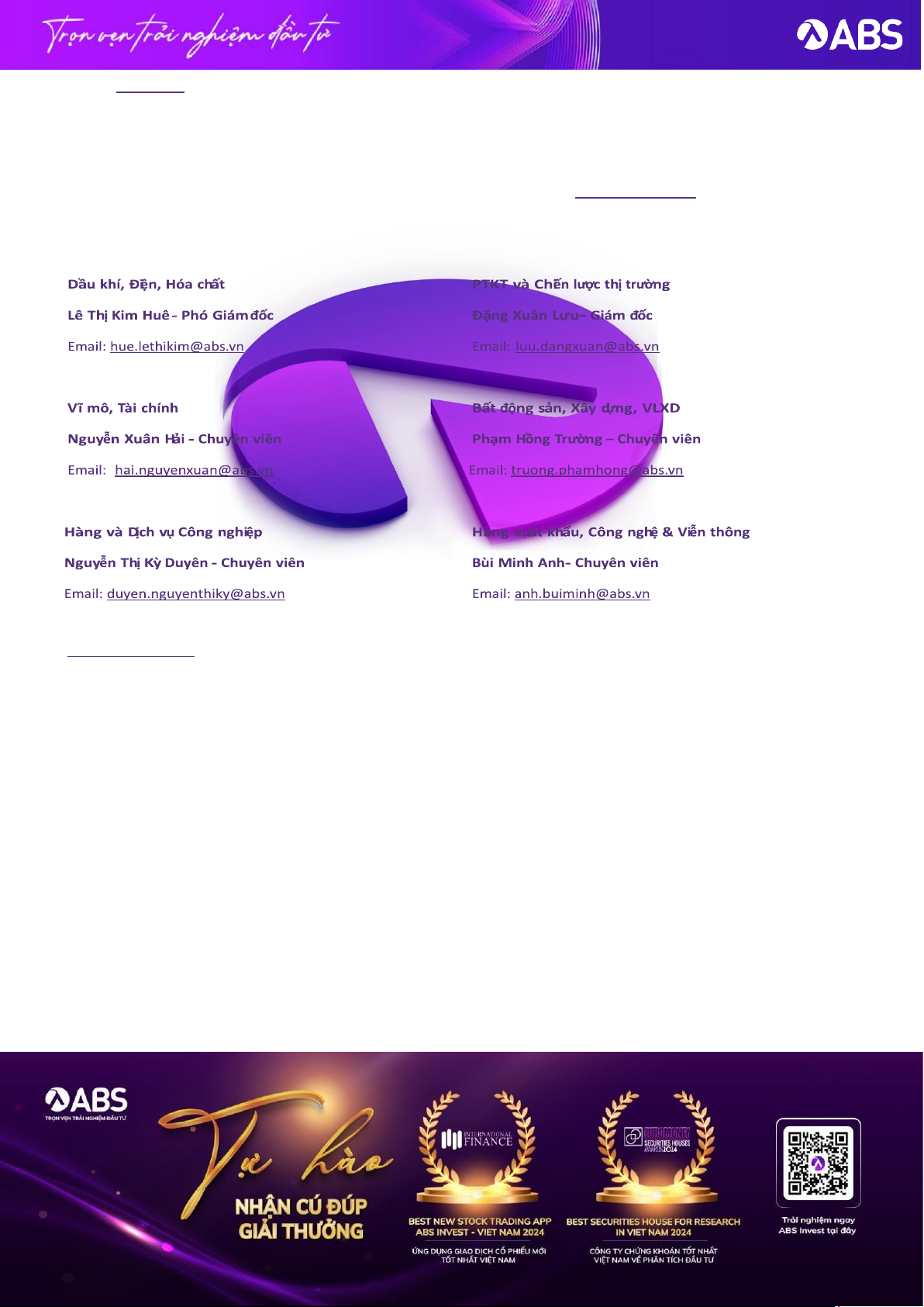 Nguyễn Thị Thùy Linh - Giám đốc TTPT Email: abs-research@abs.vn Email: linh.ngthithuy@abs.vn