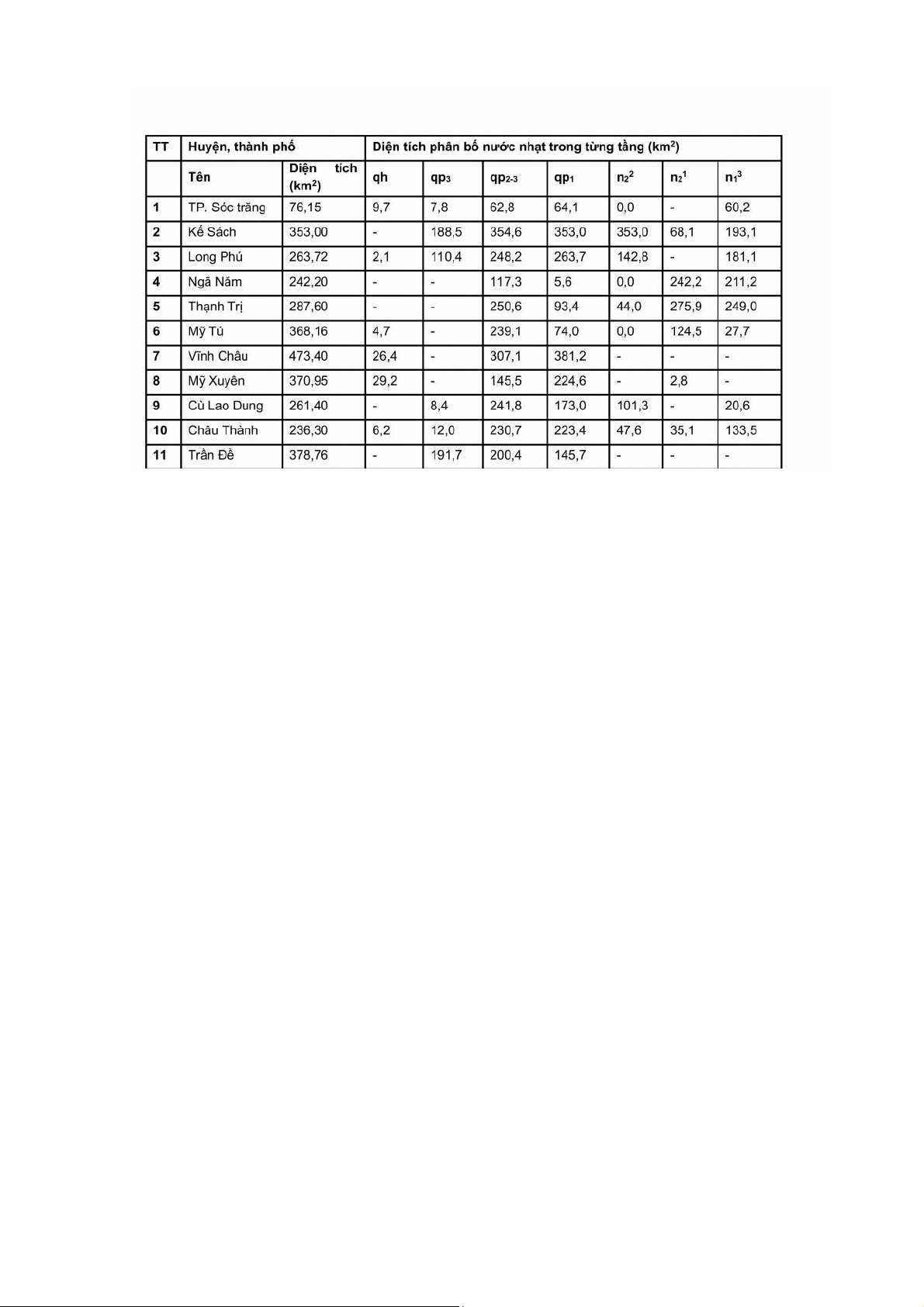 Ngoài ra, ở Sóc Trăng còn có những khu vực tồn tại các tầng chứa nước chất lượng