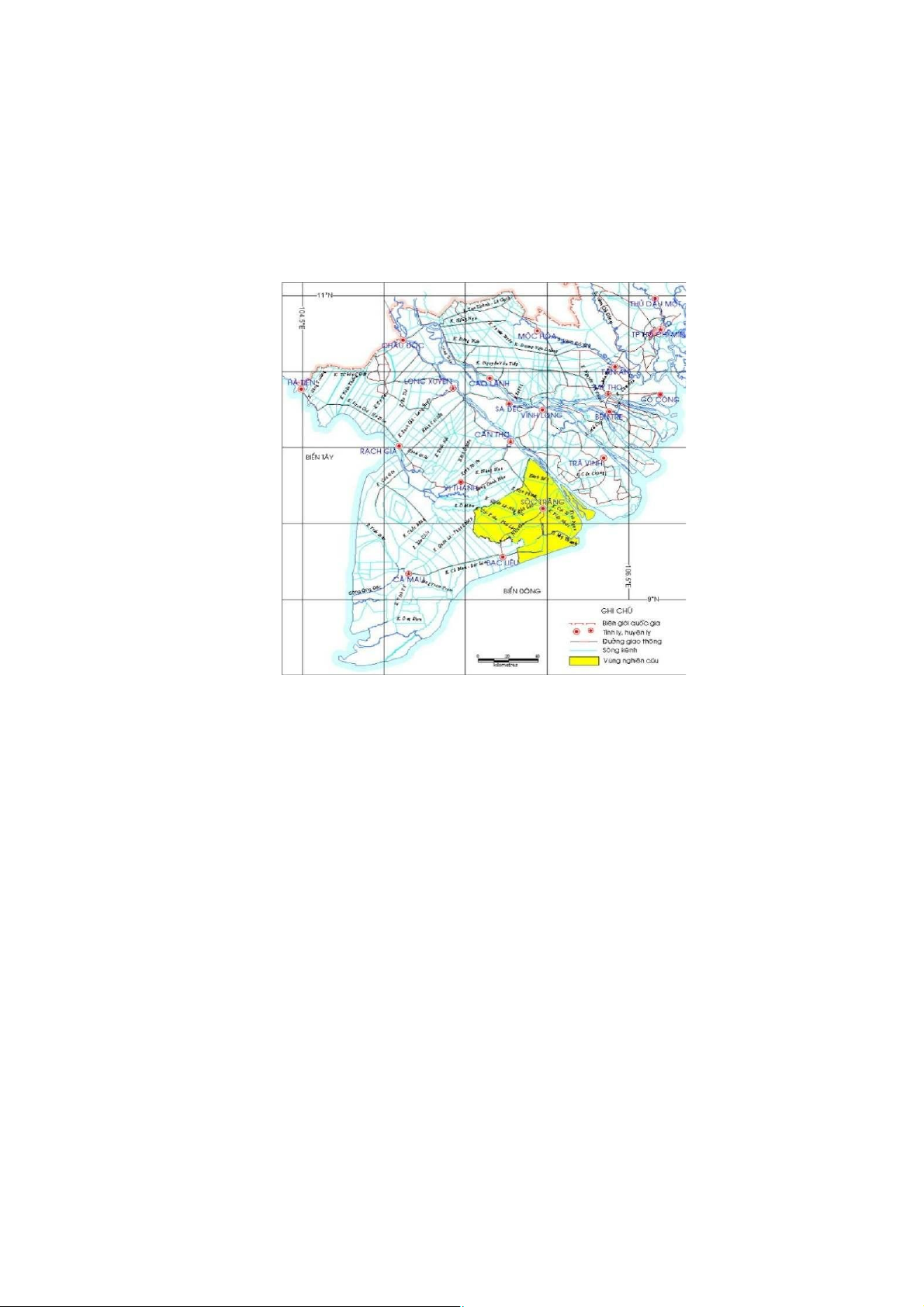 phía đông có diện tích 588,5km2 (thuộc phạm vi huyện Châu Thành, TP. Sóc