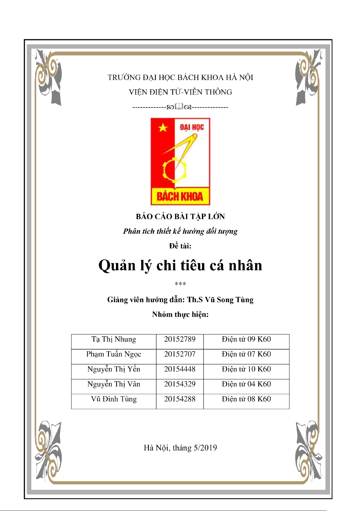 Hệ thống quản lý chi tiêu cá nhân ược xây dựng gồm bốn lớp gồm Người dùng,