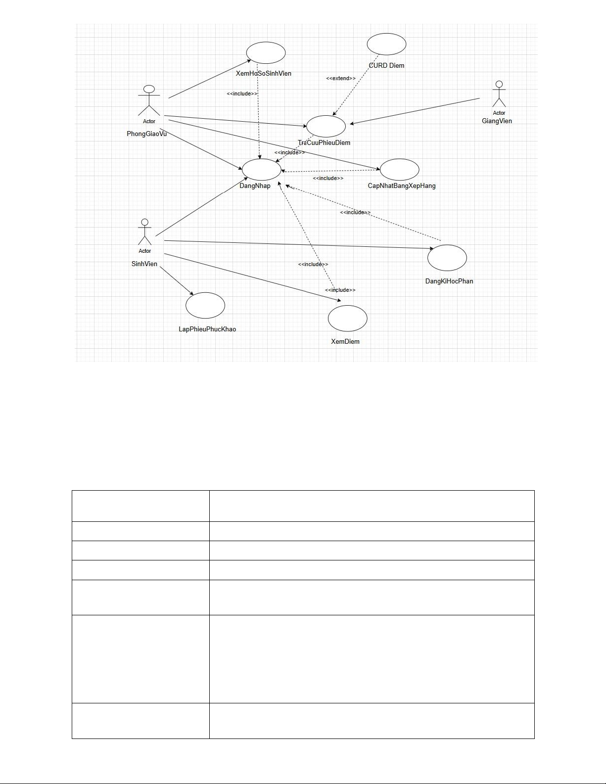 Bảng 2.2 Đặc tả Use Case hệ thống Tra cứu phiếu điểm Thuộc tính Nội dung Tên Use Case TraCuuPhieuDiem Tóm tắt