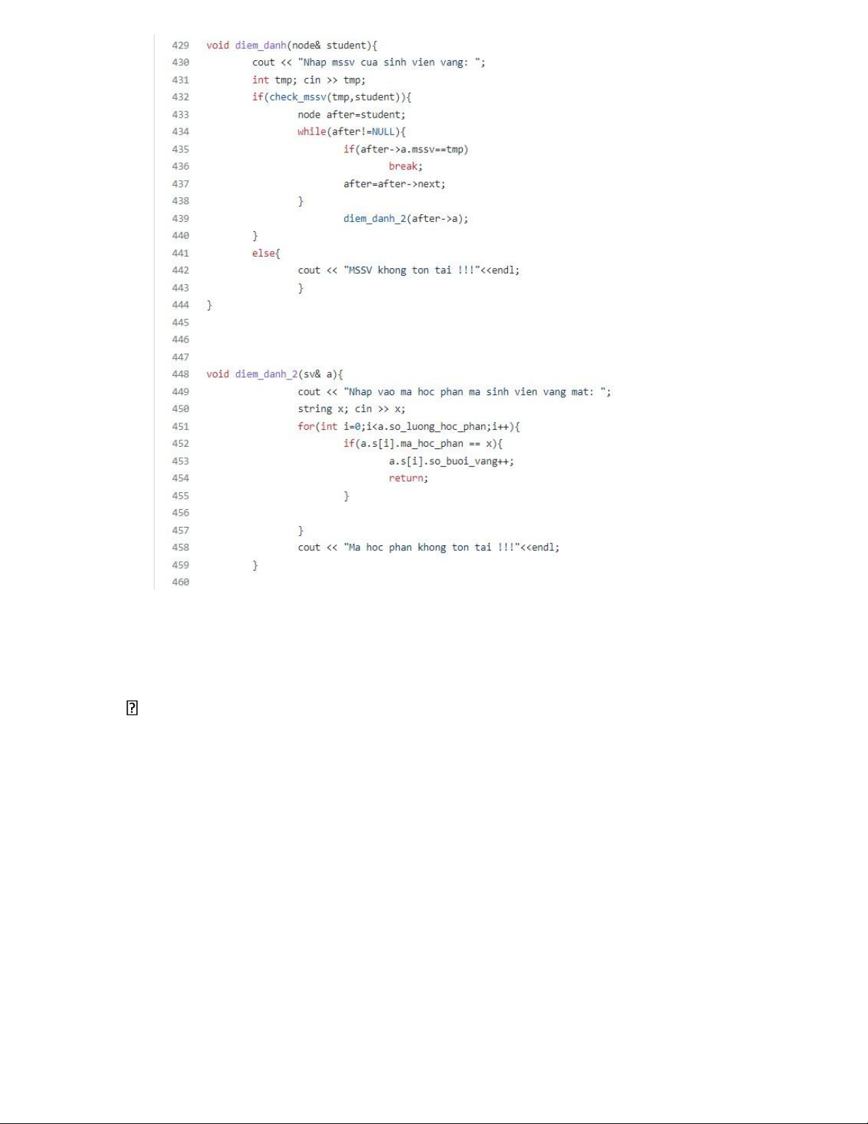 Viết code chương trình trên C++ theo từng đoạn code, mỗi đoạn code xử lý 1 chức năng.
