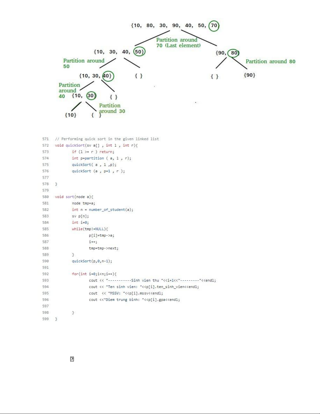 - Áp dụng QuickSort trong chương trình: III.