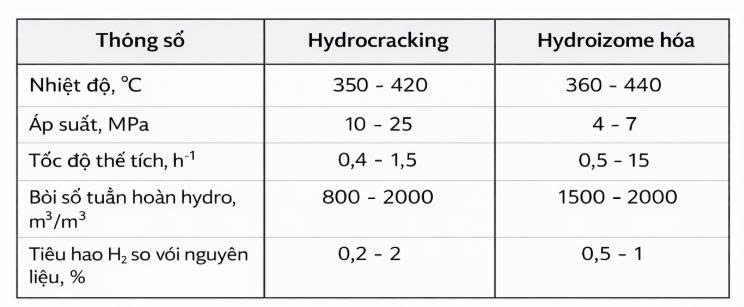 Chế độ công nghệ của quá trình hydrocracking và hydro-izome hóa như sau :