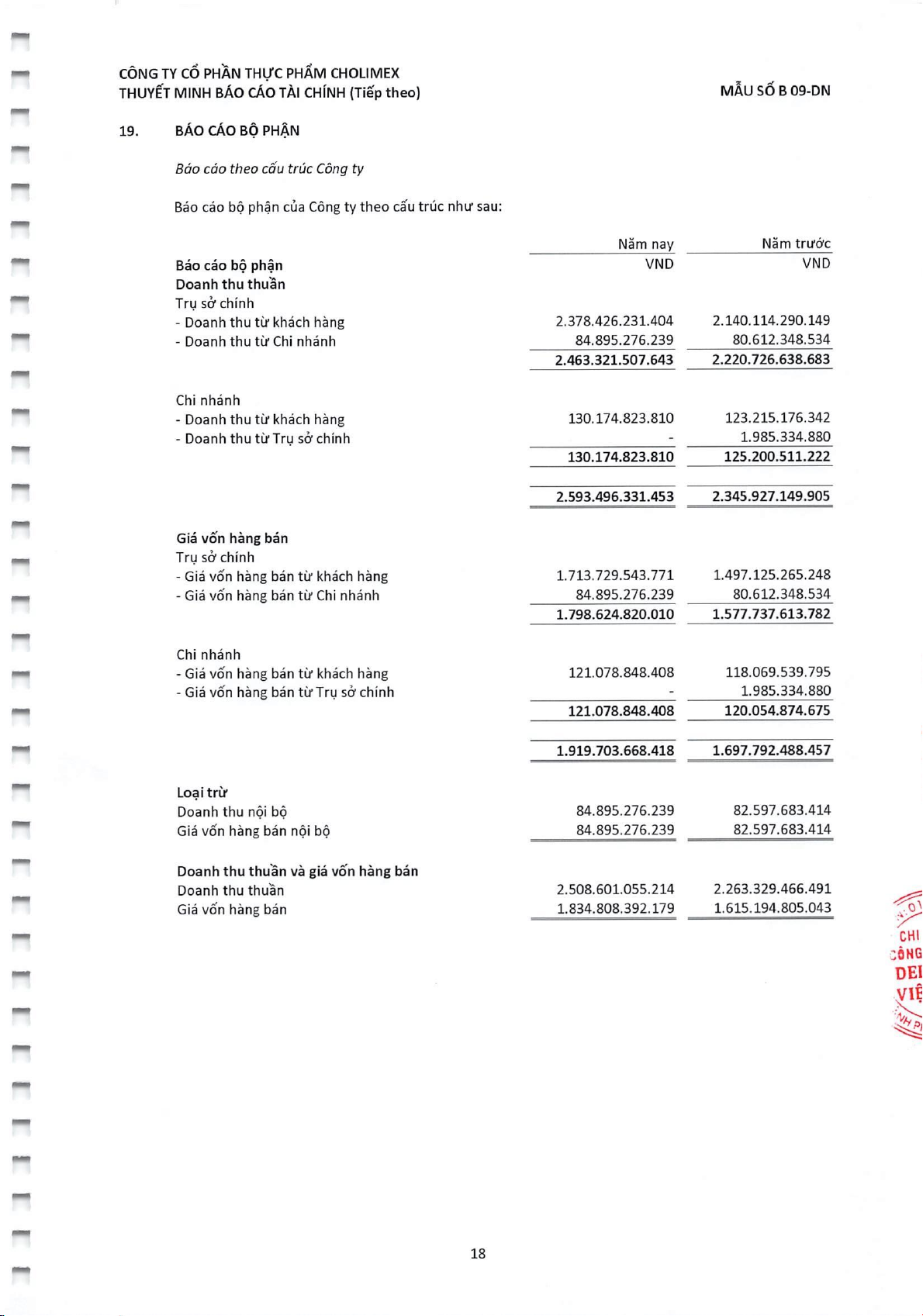 Bao cao bp phan cCia Cong ty theo cau true nhy sau: Nam nay Nam tru'pc VND Bao cao bp phan VND Doanh thu thuan Tru SO" chinh - Doanh thu ti> khach hang