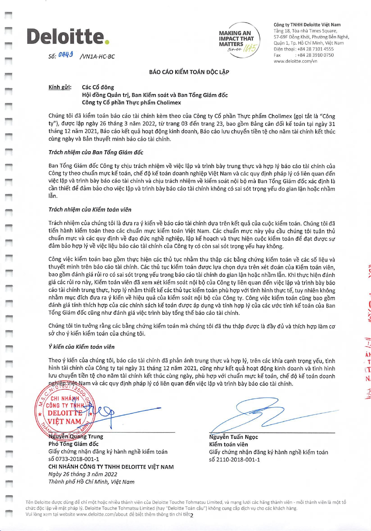 lOMoAR cPSD| 58707906 Deloitte MAKING AN IMPACT THAT MATTERS : / 7 ( .CÔNG TY CỔ PHẦ Ự N TH C PHẨ M CHOLIMEX