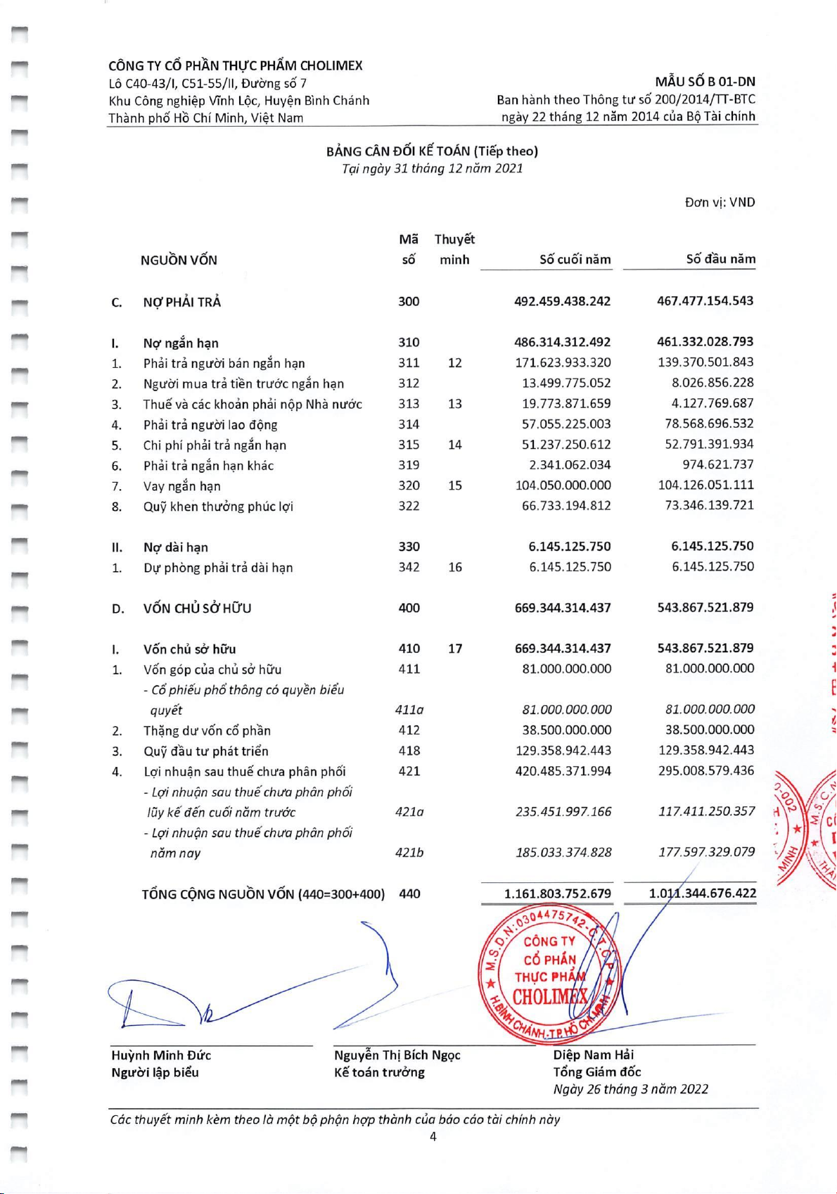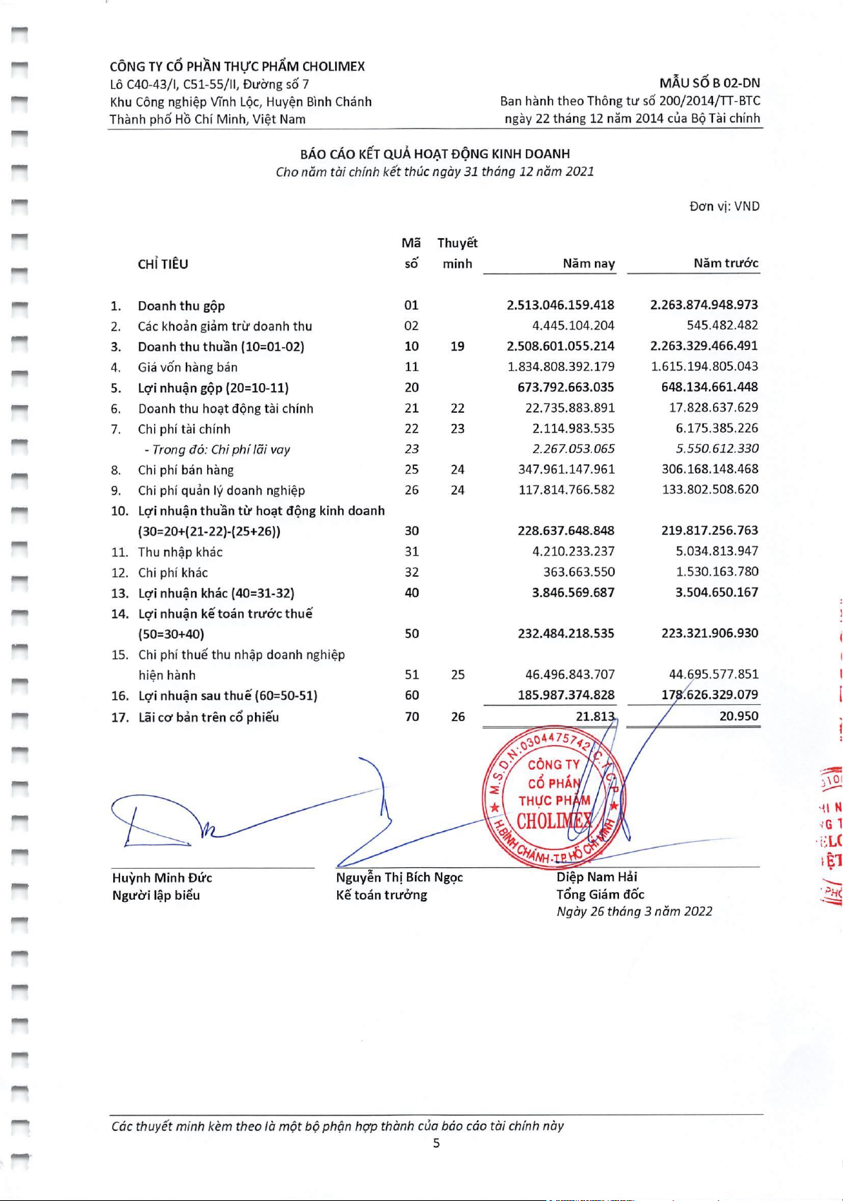 Digitally signed by CÔNG TY C Ổ PH Ầ N TH Ự C PH Ẩ M CHOLIMEX