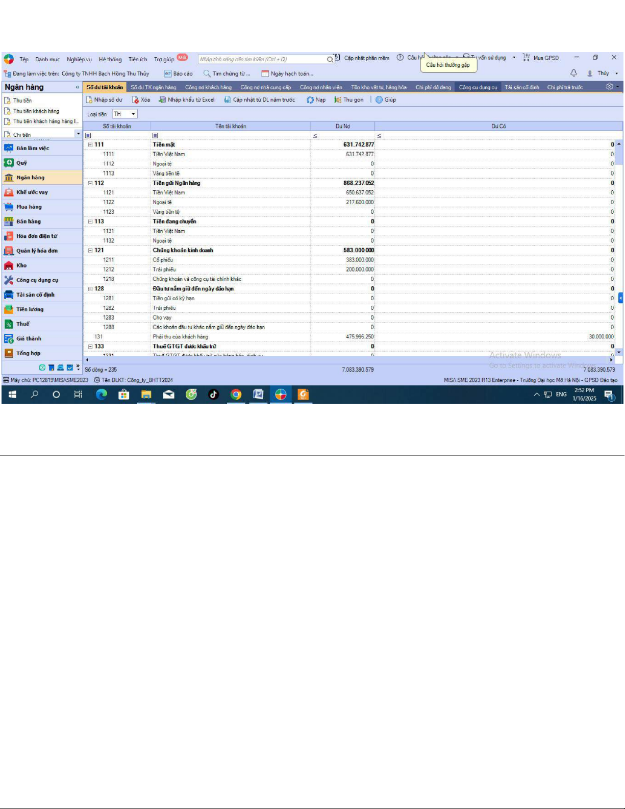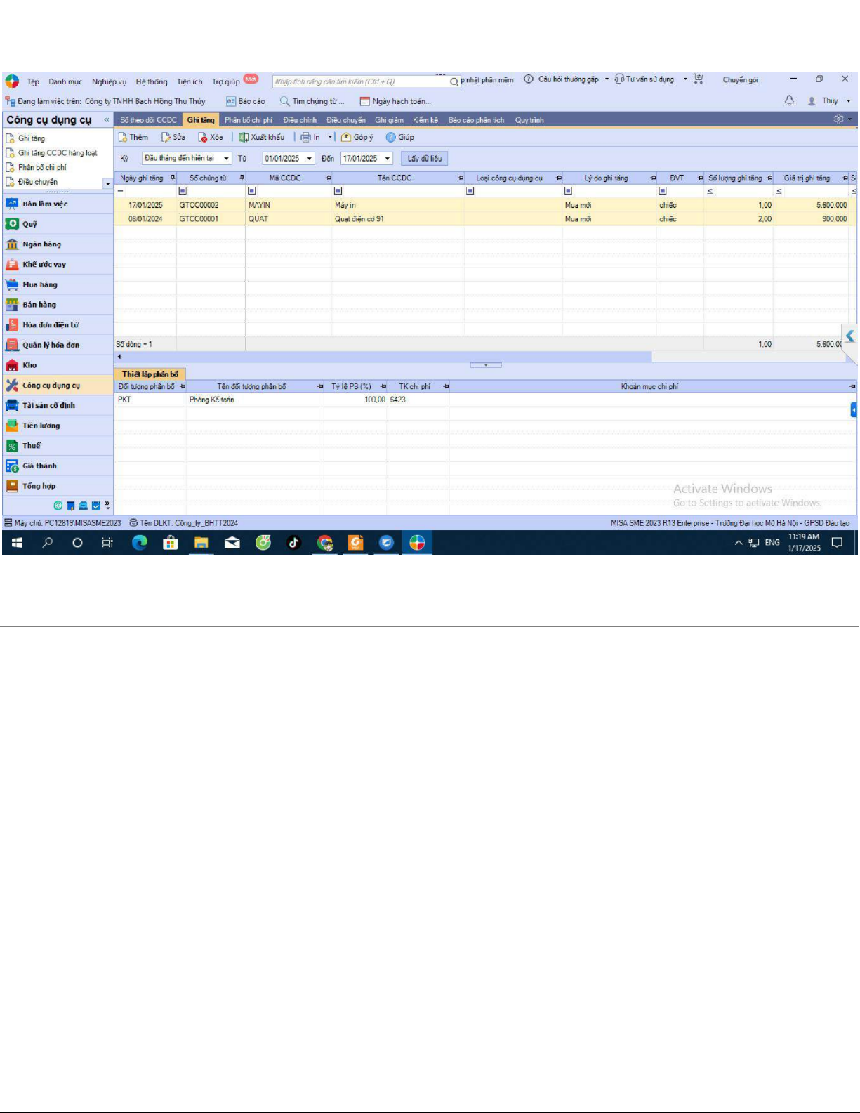 Báo cáo Tài chính và Nghiệp vụ Hệ thống Tính năng MISA SME 2023 AHDN120 | Thực tập cơ bản | Trường Đại học Bách Khoa Hà Nội