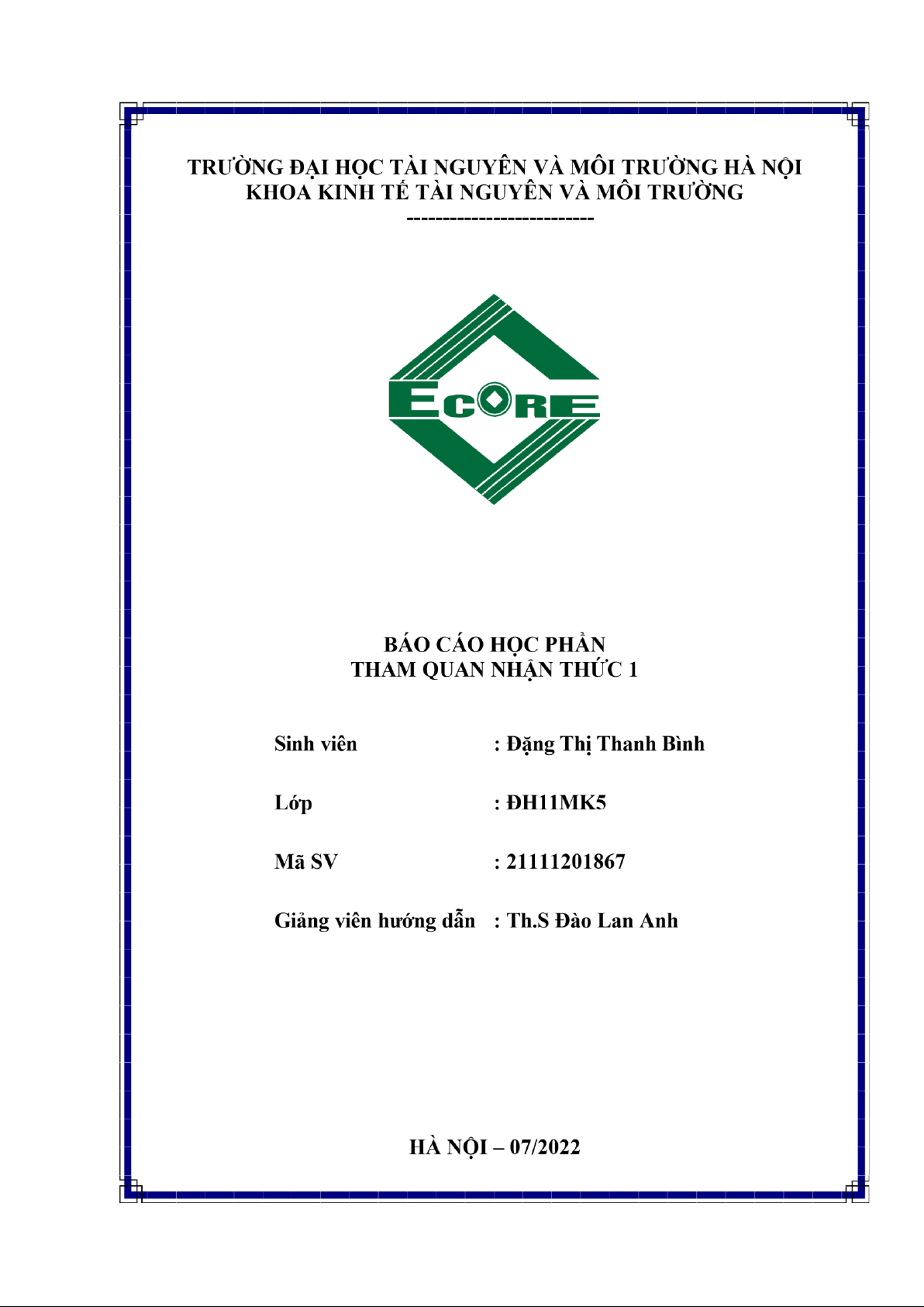 Phần 2. Đánh giá quá trình tham quan...........................................................12