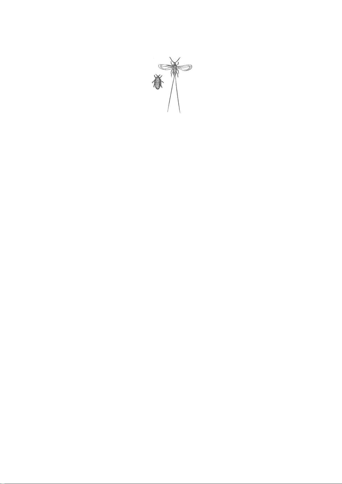 hút nhựa. Thân có ngực gồm 3 đốt, 3 đôi chân, 2 đôi lỗ thở, bụng dài, ở phía cuối có 2 lông cứng dài.