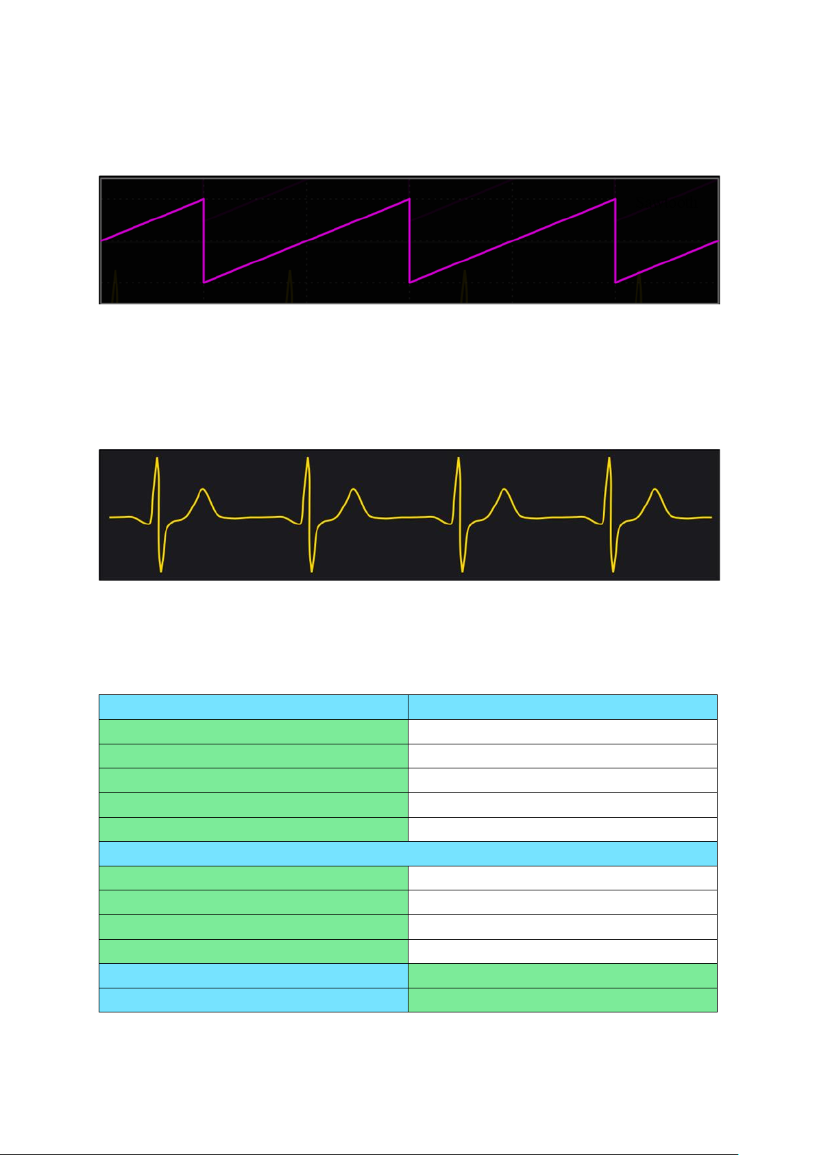Từ đây, ta tính được tần số của sóng sine và sóng ECG là: Loại sóng Tần số Sóng sine 97.66 kHz Sóng tam giác 97.66 kHz