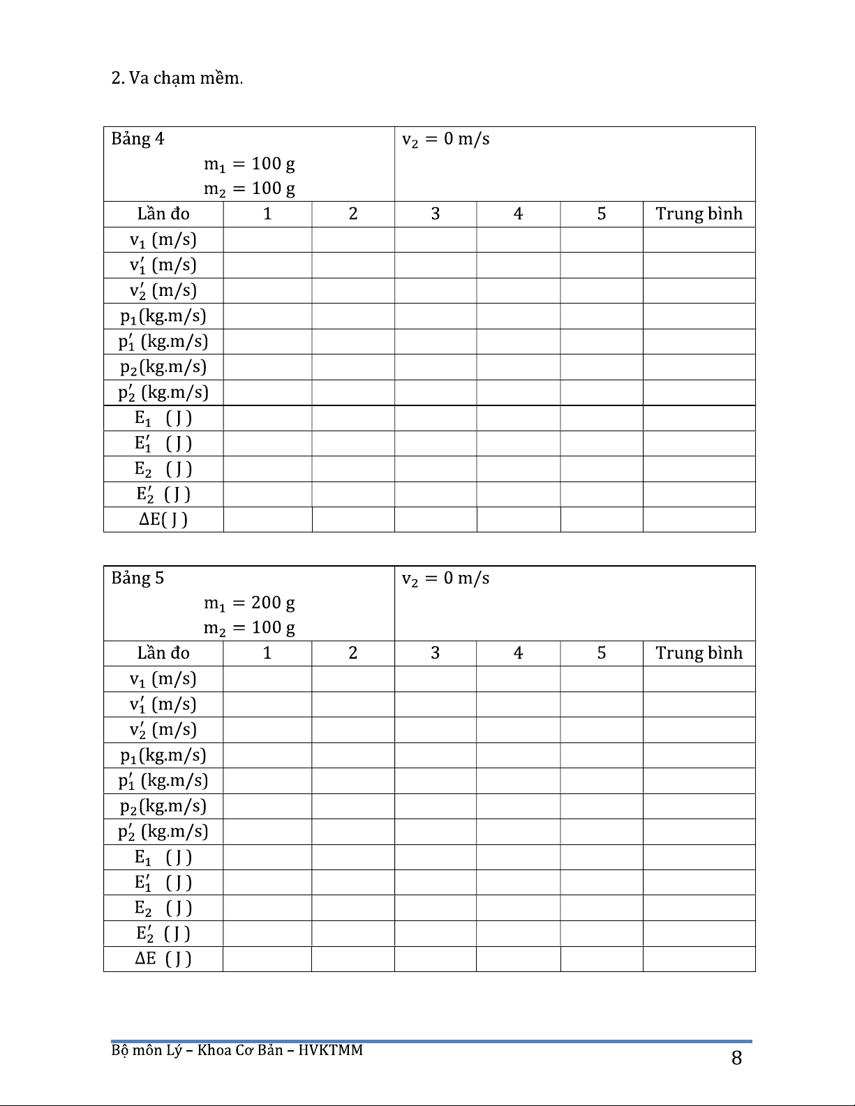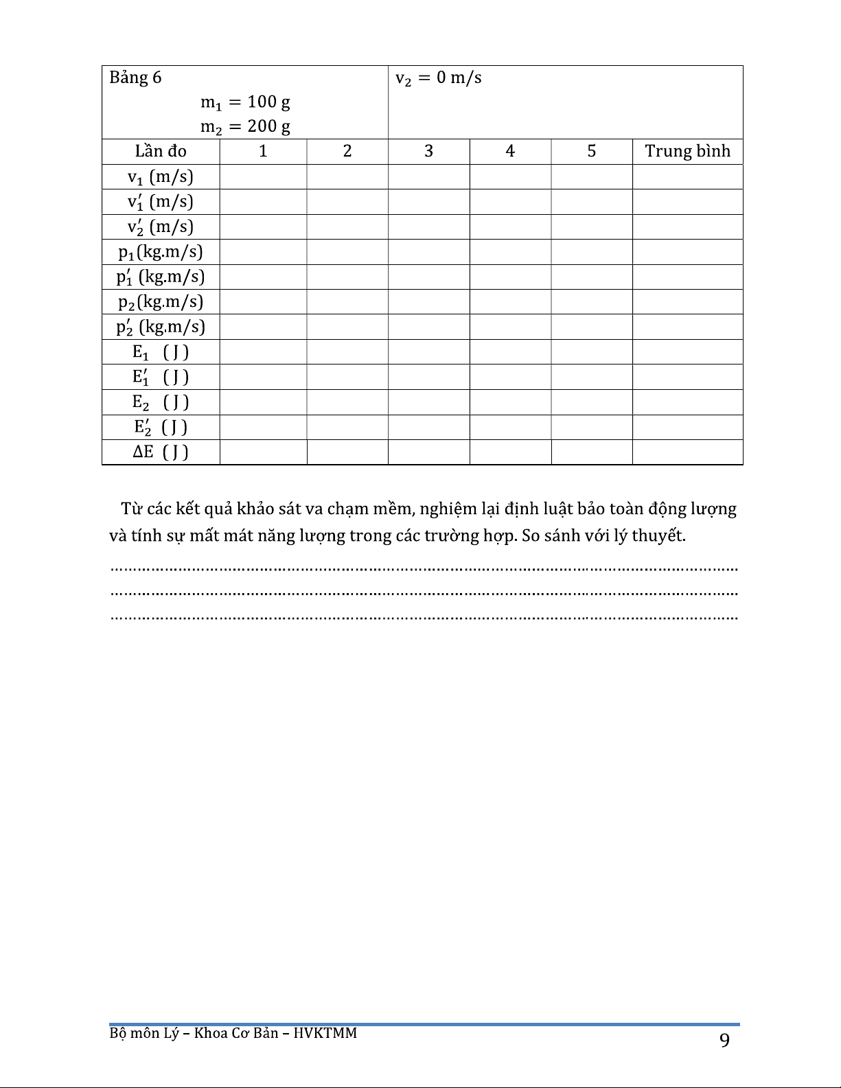 Báo cáo thí nghiệm Bài 2. Khảo sát va chạm trên đệm không khí môn Vật lý đại cương | Học viện Kỹ thuật mật mã. Tài liệu được sưu tầm giúp bạn tham khảo, ôn tập và đạt kết quả cao. Mời bạn đọc đón xem.