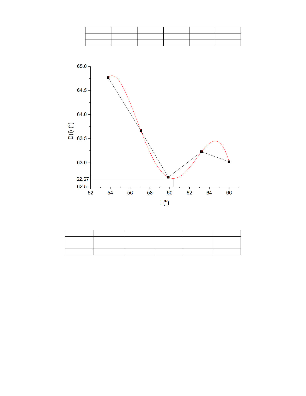 Áp dụng cách tính trên vào từng số đo góc i ta được bảng sau: �㕖 (°) ∆�㕖 (°) �㔀�㕖 (%) Ā (°) ∆Ā (°) �㔀Ā (%) 66,00 0.78 1,31 63,02 2,18 3,35 63,23 1.13 1,79 63,23 2,85 3,98 59,86 0.73 0,74 62,70 1,57 2,15 57,08 1.27 2,03 63,67 3,20 4,92 54,77 1.17 1,30 64,77 3,05 4,70 Đồ thị: