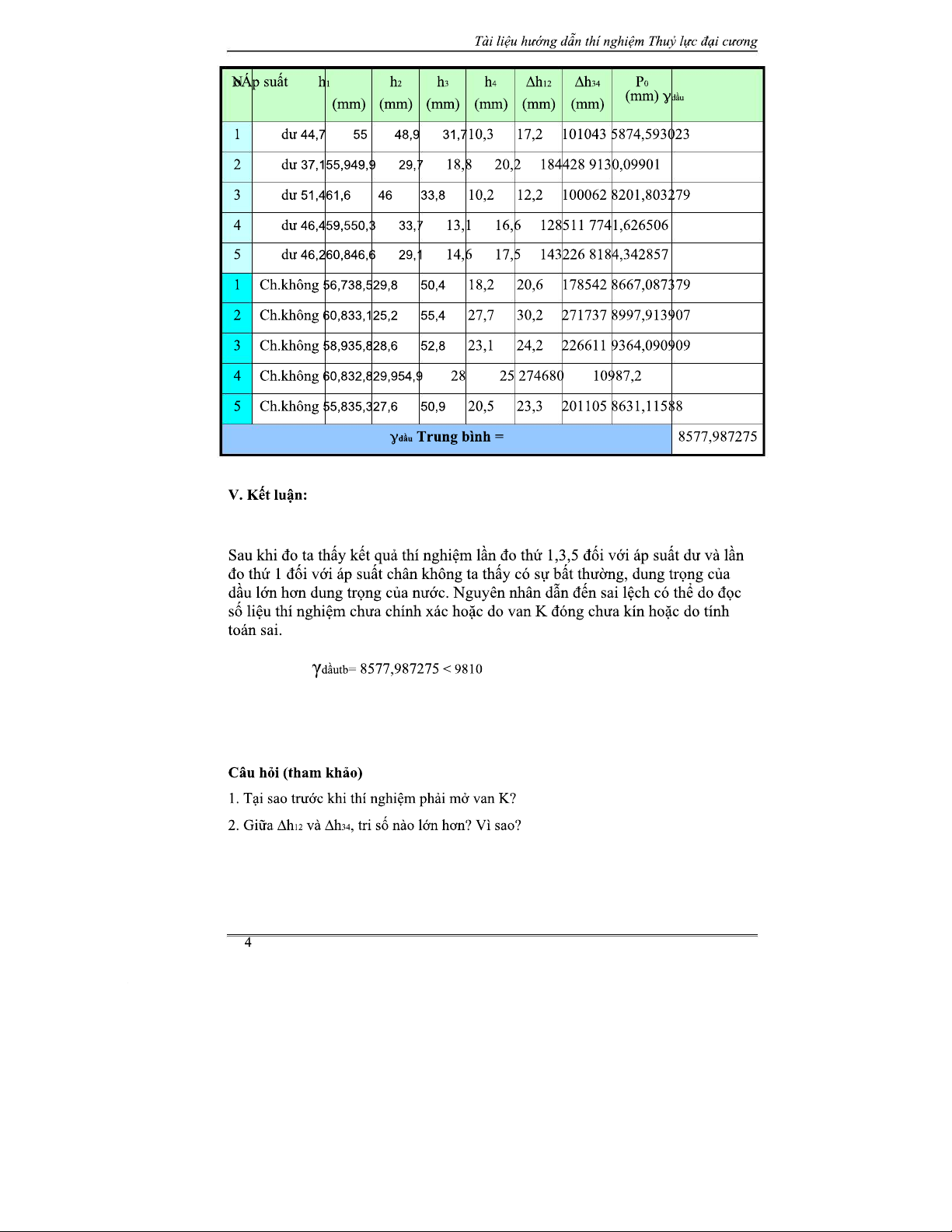 Báo cáo Thí nghiệm Cơ Lưu Chất 1 - Khoa Xây Dựng Thủy Lợi 21X1B