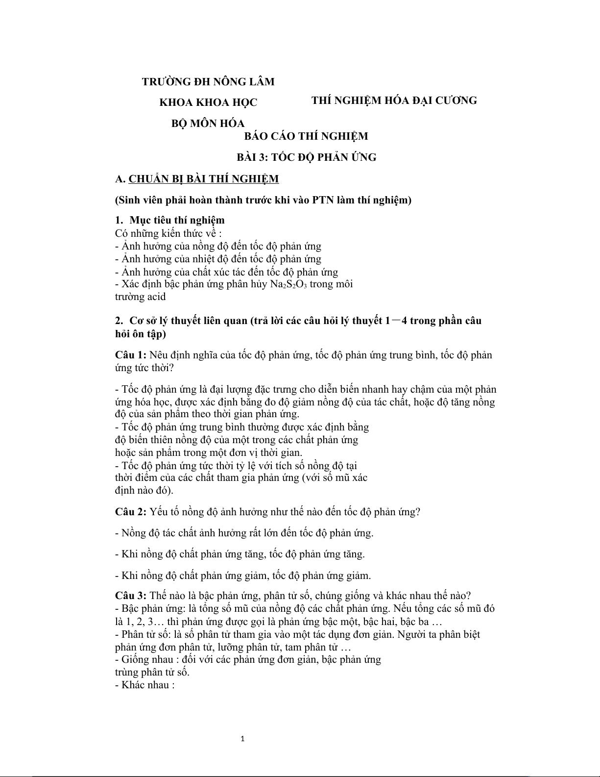 THÍ NGHIỆM HÓA ĐẠI CƯƠNG BỘ MÔN HÓA BÁO CÁO THÍ NGHIỆM