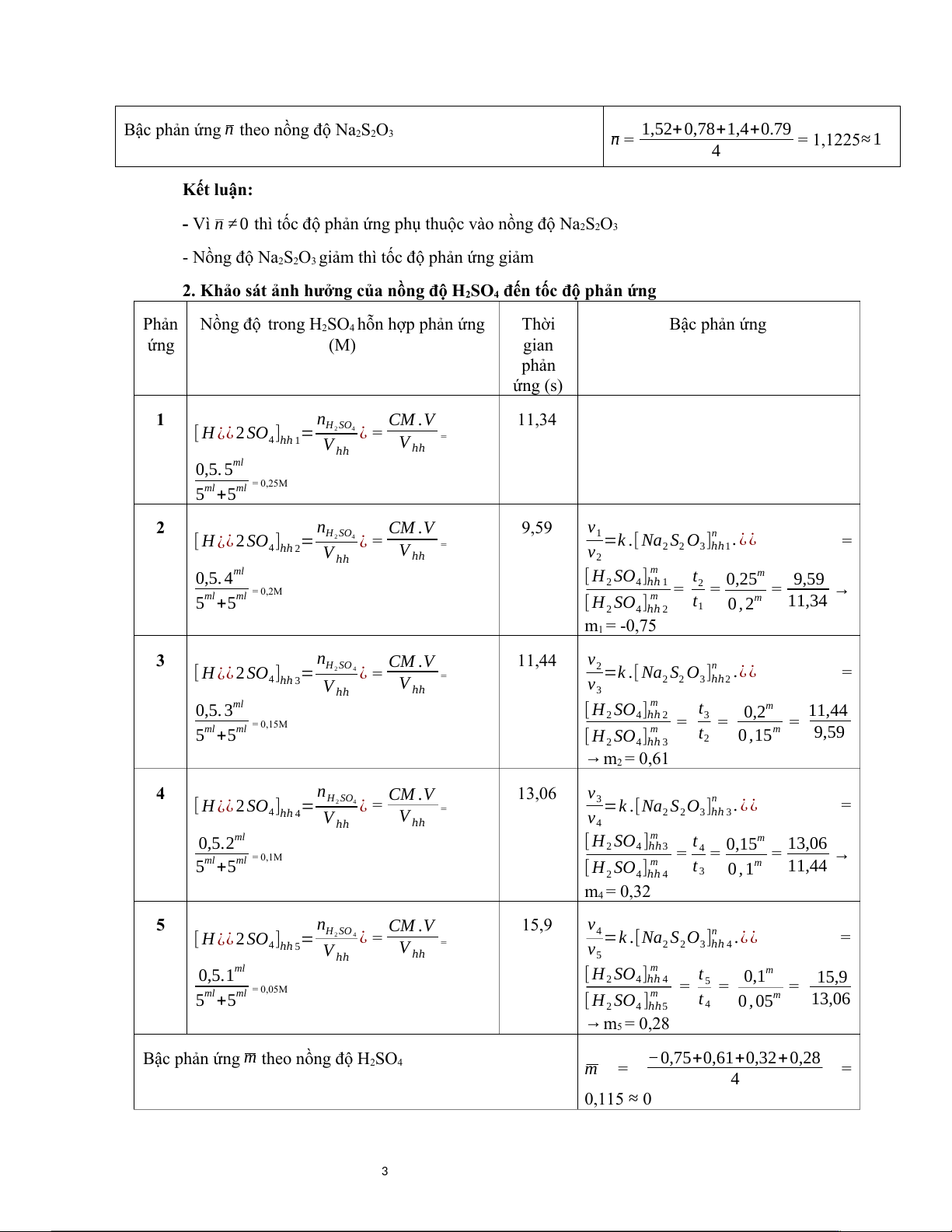 - Xác định bậc phản ứng phân hủy Na2S2O trong môi 3 trường acid