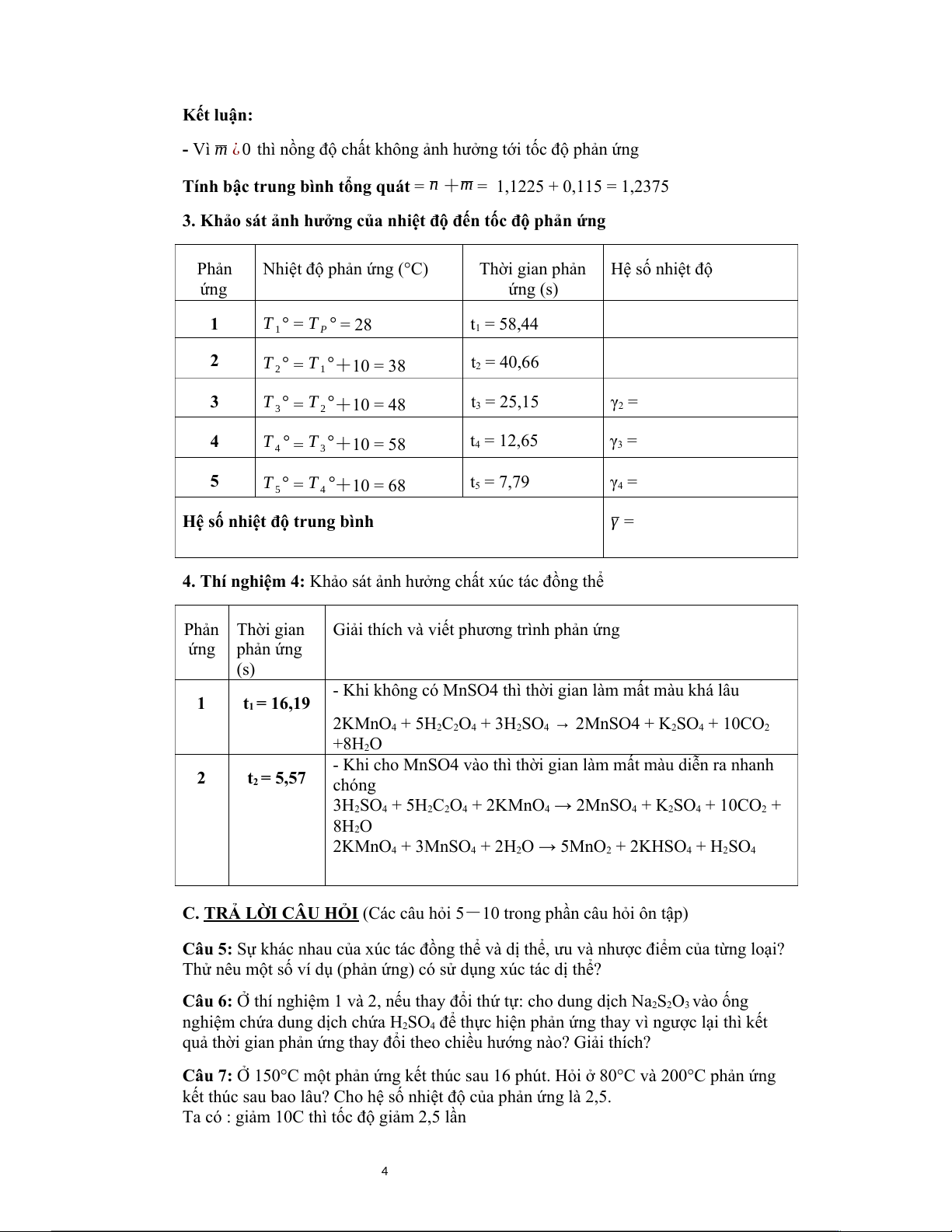 2. Khảo sát ảnh hưởng của nồng độ H2SO đến tốc độ phản ứng 4 Phản