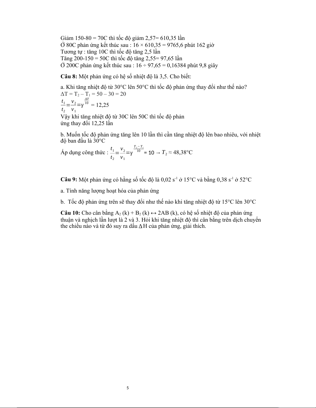 Câu 7: Ở 150°C một phản ứng kết thúc sau 16 phút. Hỏi ở 80°C và 200°C phản ứng