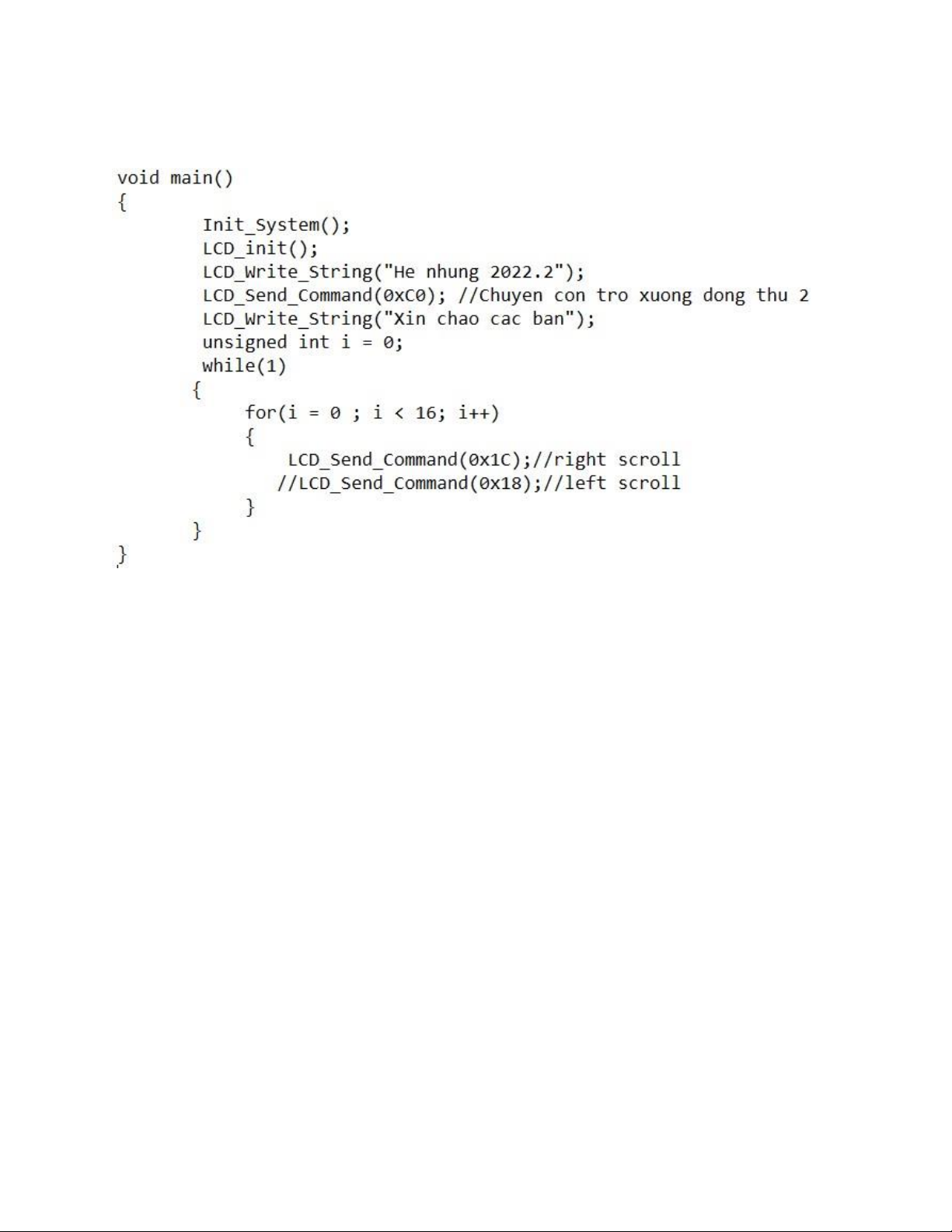 - (1) : Yêu cầu: hiển thị lên LCD: “He nhung 2022-2