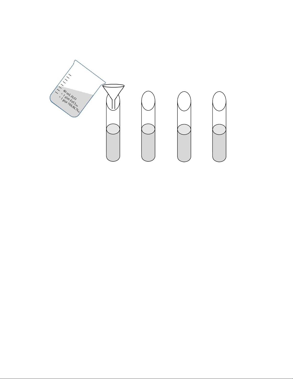 Sau đó chia đều ra 4 ống nghiệm. Đánh số thứ tự 1, 2, 3, 4. Ống 1 Ống 2 Ống 3 Ống 4