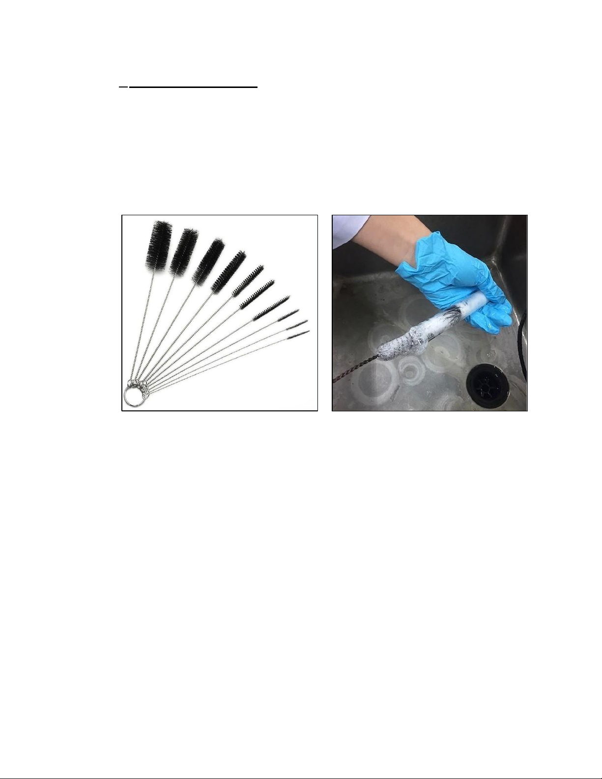 đáy và thành ống, đồng thời kéo chổi lên xuống, vừa kéo vừa xoay để rửa thành ống.
