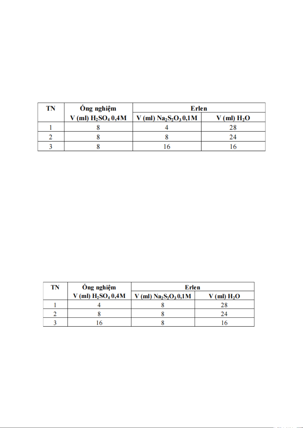 Làm tương tự thí nghiệm 1 với lượng axit và Na2S2O3 theo bảng sau: