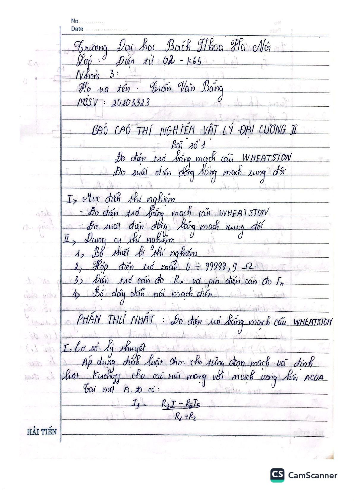 Báo cáo thí nghiệm: Phân tích mạch Wheatstone môn Vật lý đại cương 2 | Trường Đại học Bách Khoa Hà Nội