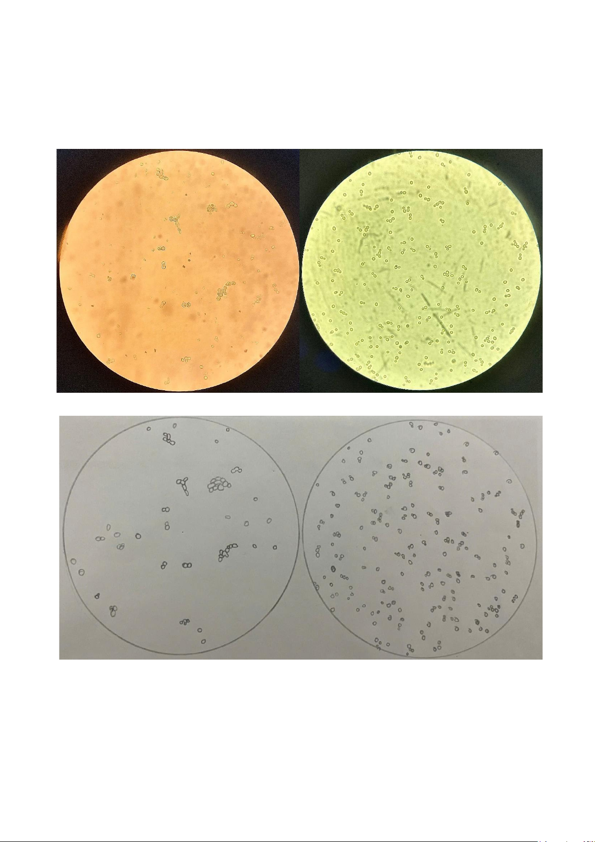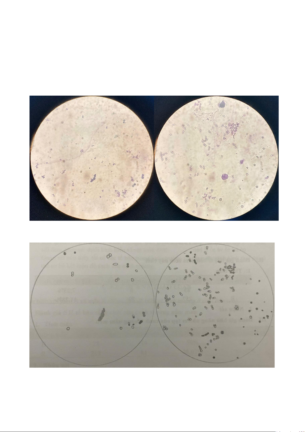 - Quan sát đặc điểm hình thái của hai canh trường nấm men, xác định được số tế bào lạ,